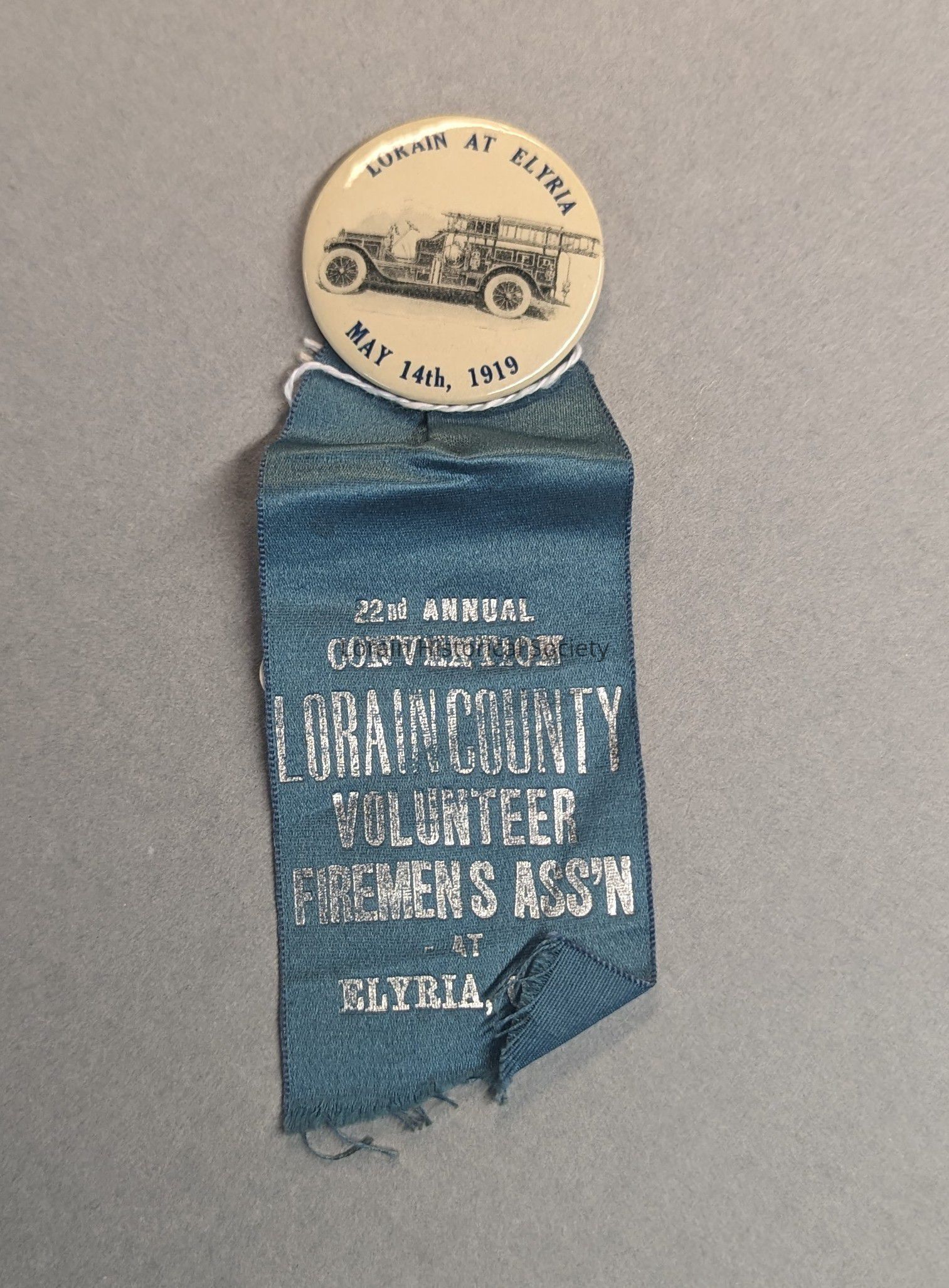 22nd Annual Lorain County Volunteer Firemen's Association. May 14, 1919 at Elyria Badge and Ribbon Convention.