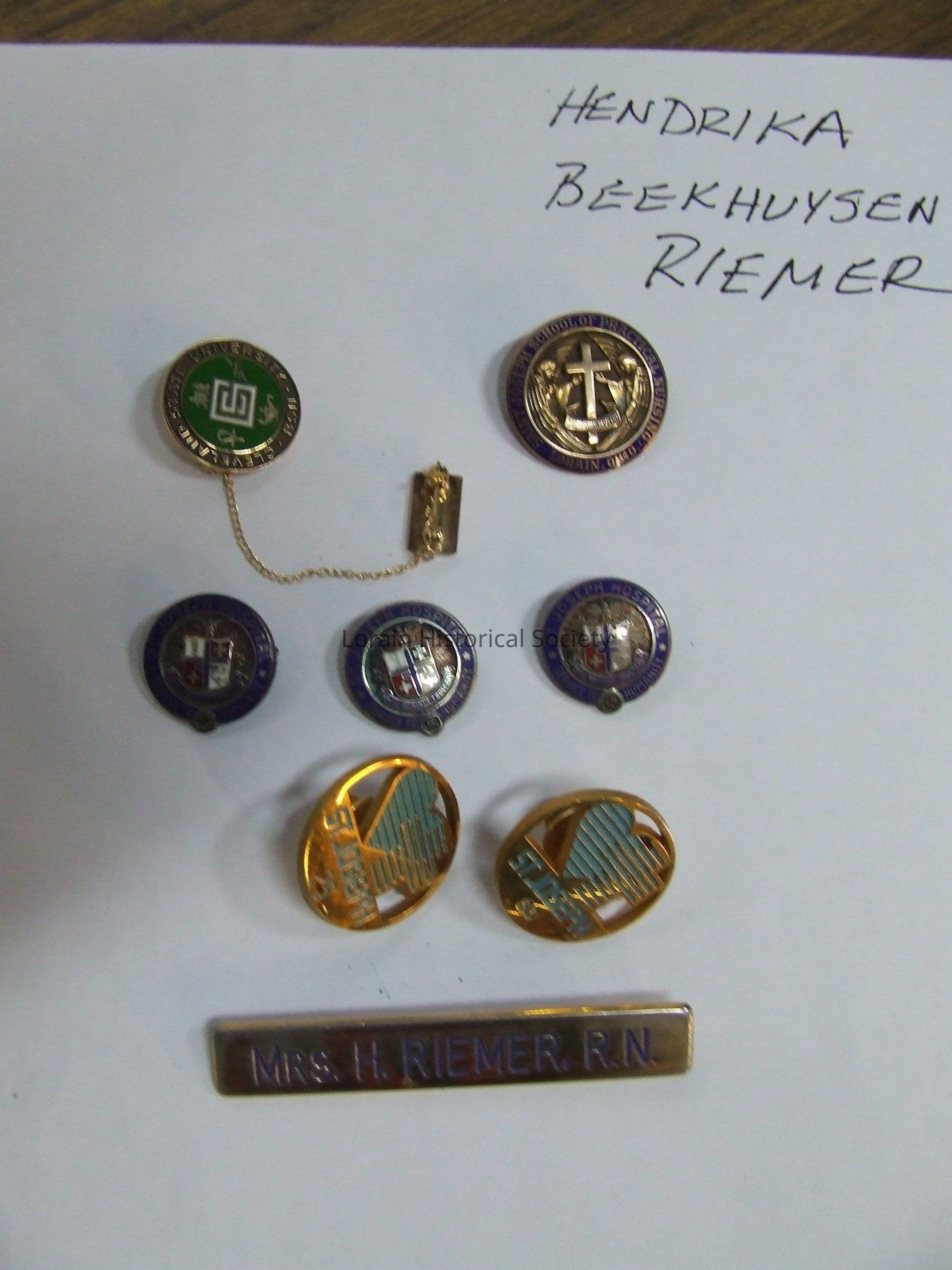 These are nursing pins spanning the career of Hendrika Beekhuysen Riemer, the aunt of Thomas Palmer's wife, Anne.