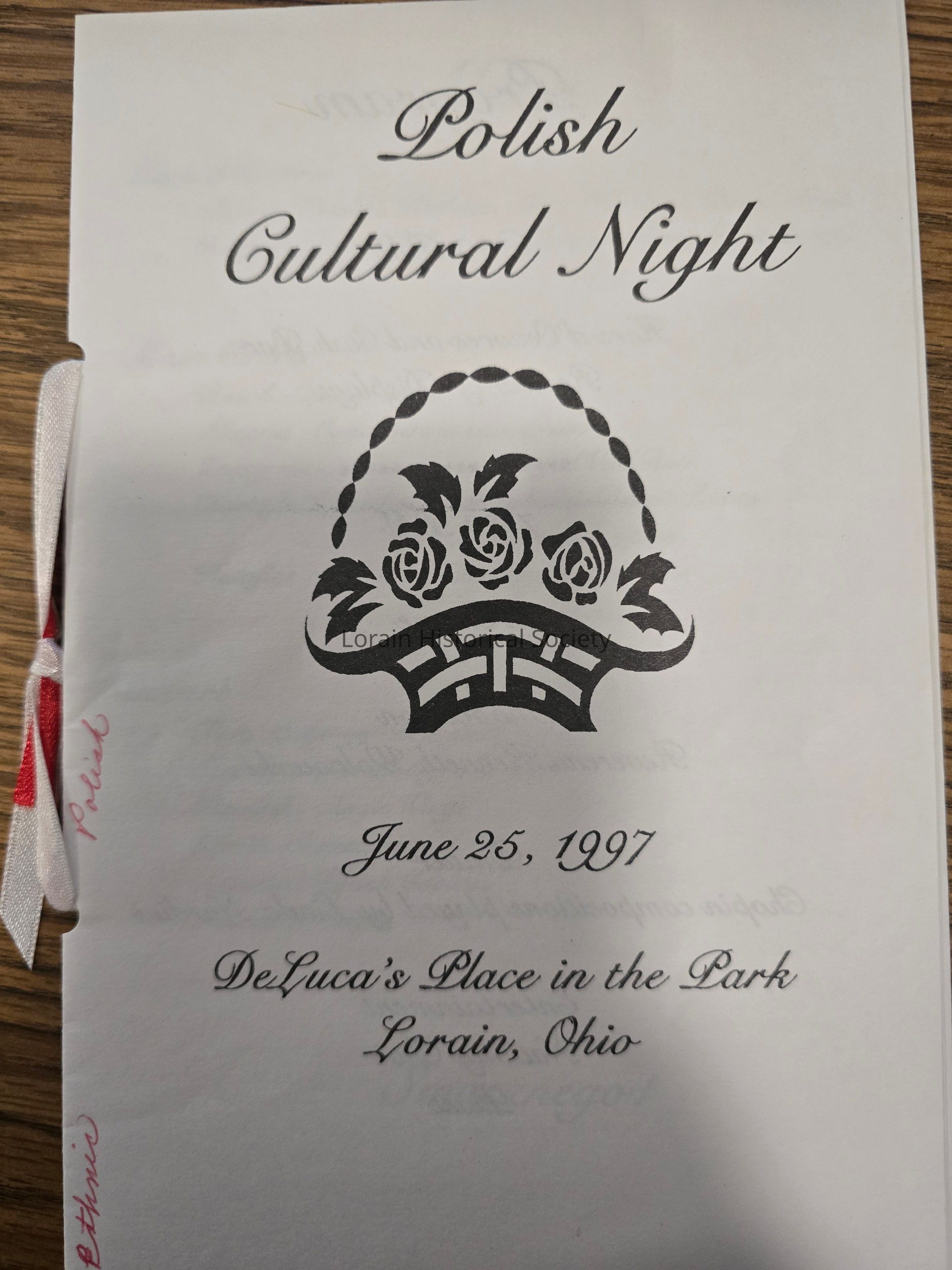 Program and ticket, Polish Cultural Night. June 25, 1997 at DeLuca's Place in the Park. A Lorain International Festival event.