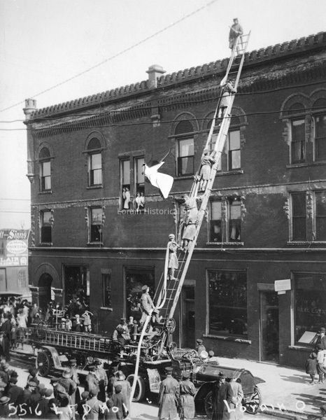 8/17/2022 AMS: jfm122303006. Black and white postcard is view of No. 1 Hook and Ladder Company, Lorain Fire Department.