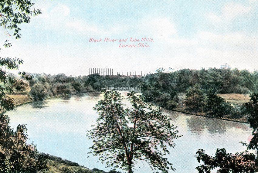 08/04/2021 AMS: Color postcard is view of Black River looking toward Tube Mills in distance. c. 1930 Postcard reads: "Black River and Tube Mills, Lorain, Ohio". 2 copies