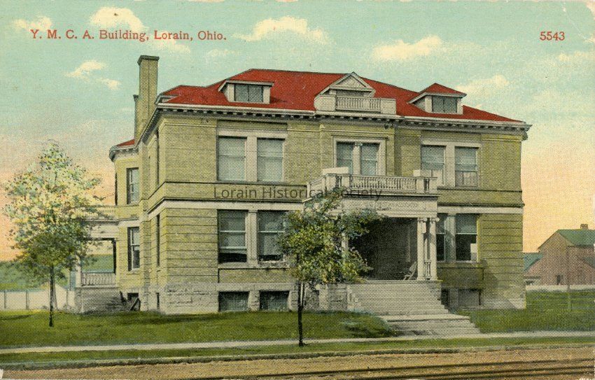07/13/2022 AMS: Postcard is view of YMCA Building c. 1916. Postcard reads: "Y. M. C. A. Building, Lorain, Ohio 5543".