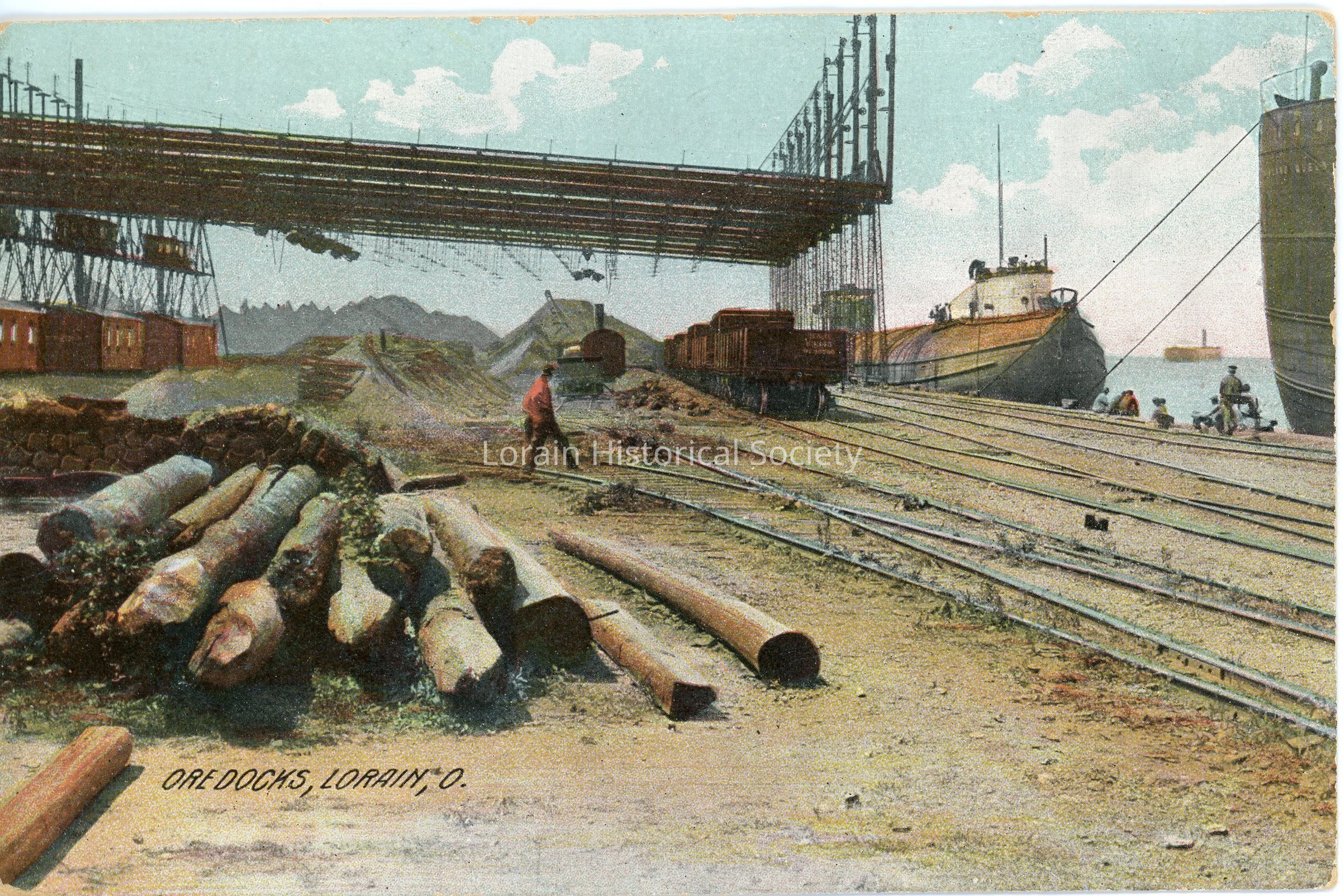 06/09/2021 AMS: cd0827031. Color Postcard. Postcard reads: "ORE DOCKS, LORAIN, O." Written on back: "Bought June 29, 1009".Acquisition