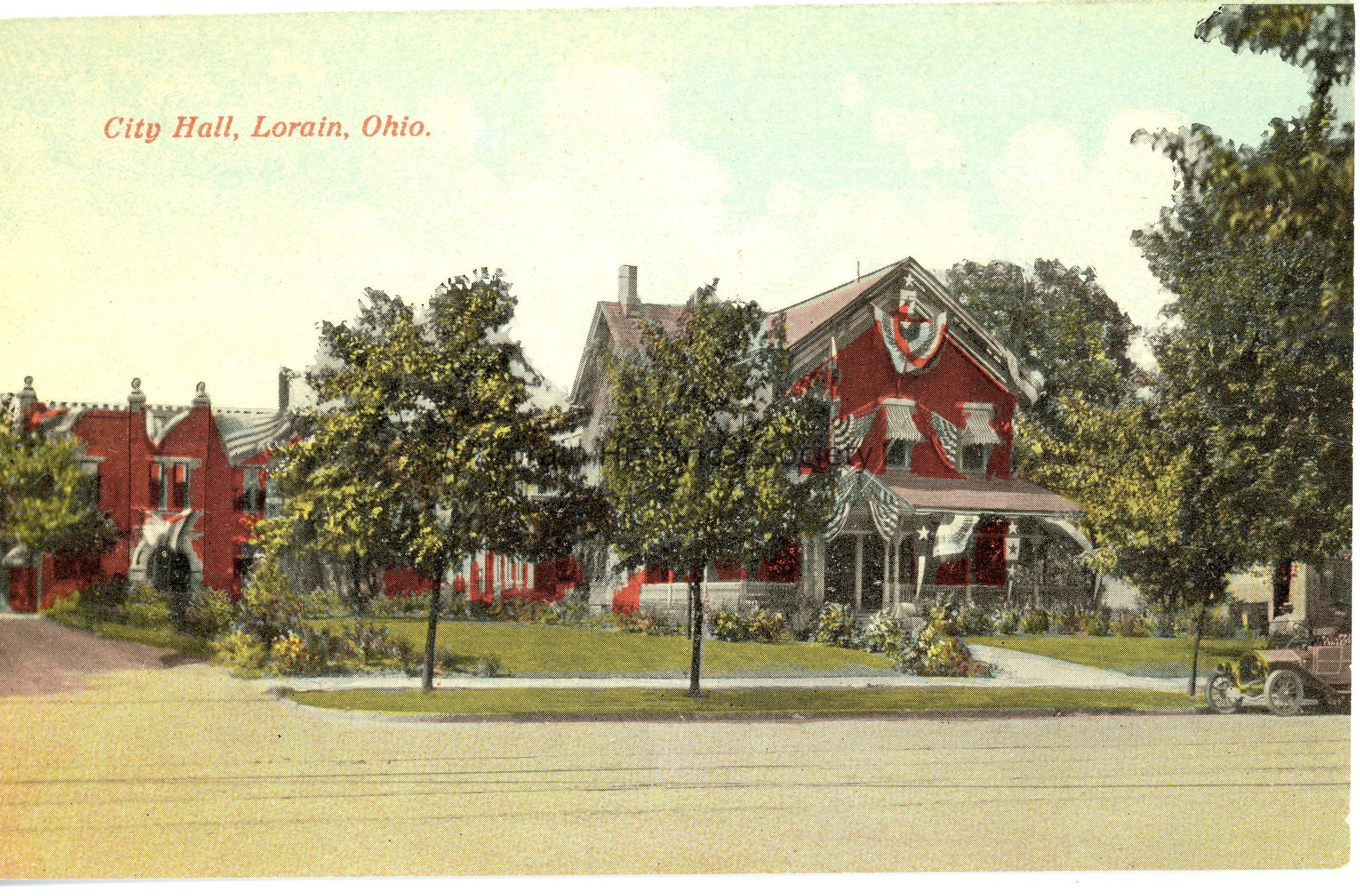 06/22/2022 AMS: 2008:327. Color postcard is view of City Hall and Jail. Postcard reads: "City Hall, Lorain, Ohio." (John Stang Home).