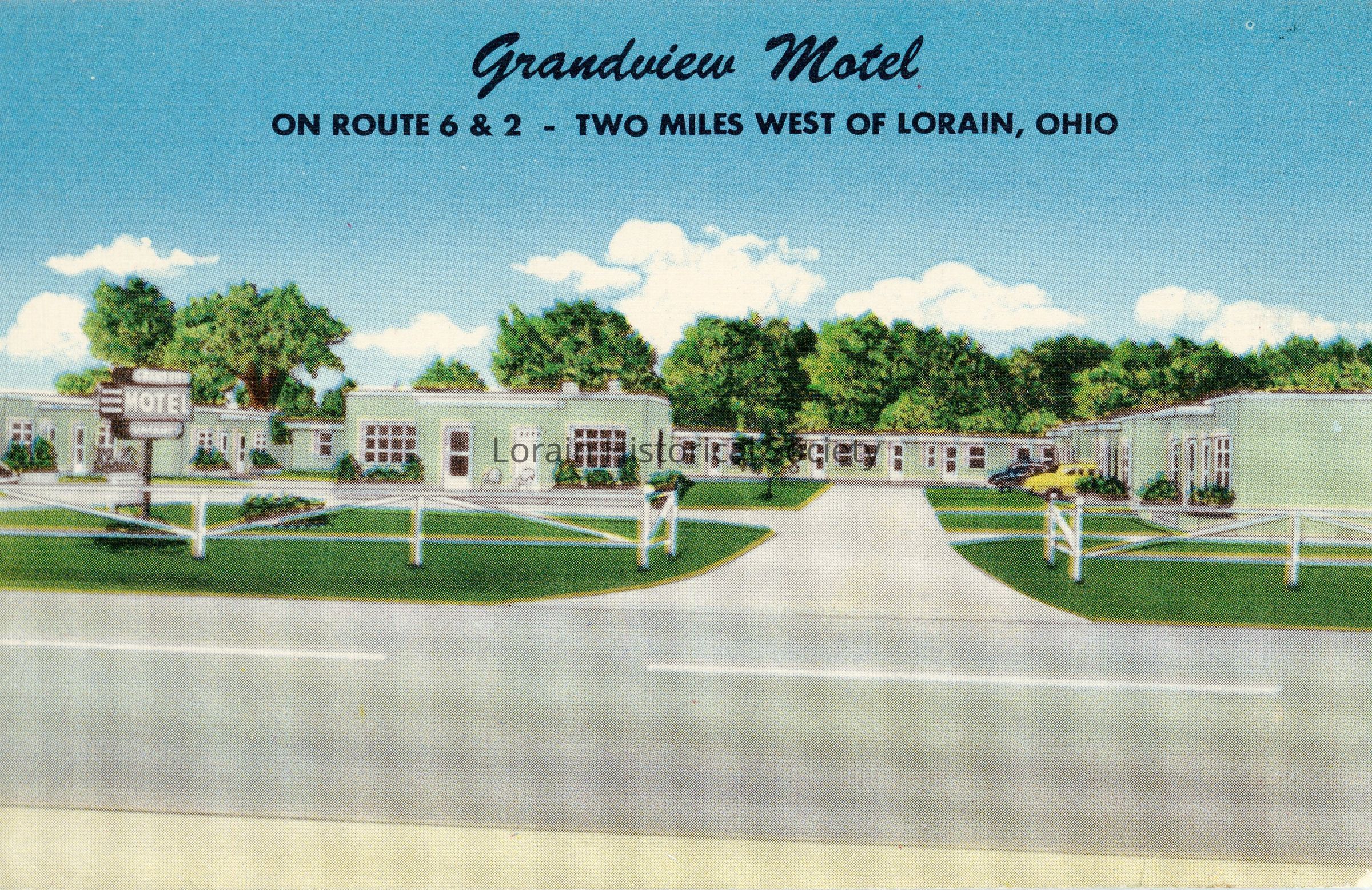 12/08/2021 AMS: jfm081208073. Color postcard is view of Grandview Motel. Postcard reads: On front: "Grandview Motel. ON ROUTE 6 & 2 - TWO MILES WEST OF LORAIN, OHIO". On back: "GRANDVIEW MOTEL. All private baths - Hot water heat. Open all year - 25 units. On Route 6 and 2. 2 miles West of Lorain, Ohio". c. 1951. CB D1 F15Acquisition