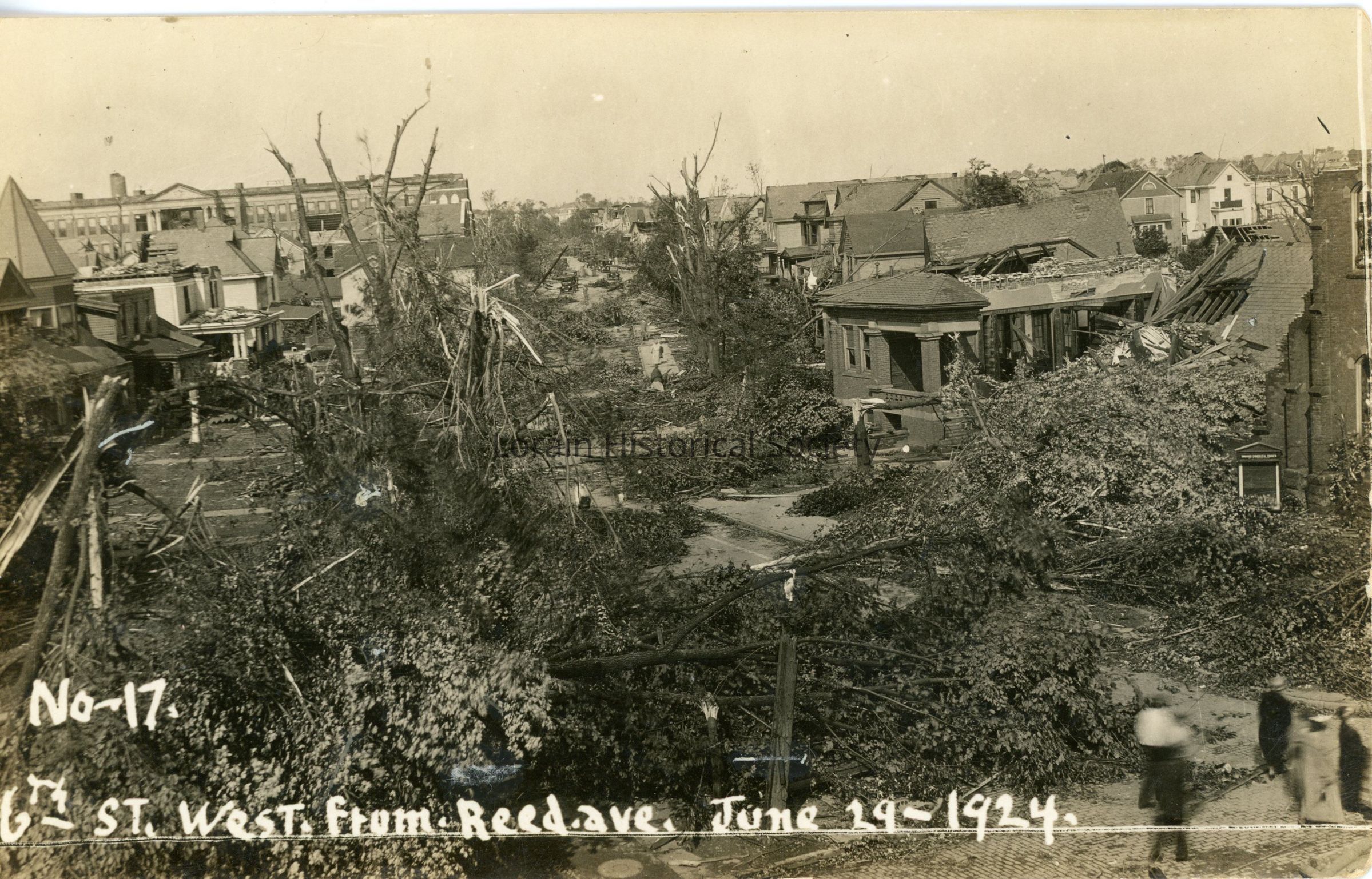 Postcard is view of 6th Street west from Reid Avenue showing to residential area from 1924 Tornado. Postcard reads: "6th St. west from Reed ave. June 29 1924".Acquisition