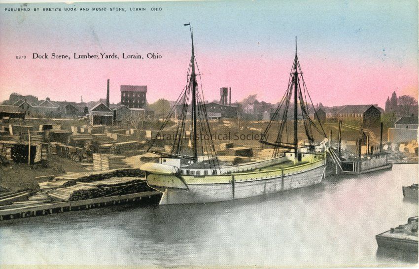 04/28/2021 AMS: nfb0716003. Color Postcard. Postcard reads: "8370 Dock Scene, Lumber's Yards, Lorain, Ohio'. Published by Bretz's Book and Music Store, Lorain, Ohio. Written on back of postard: "Bought Oct. 19, 1908". 2 copies.Acquisition