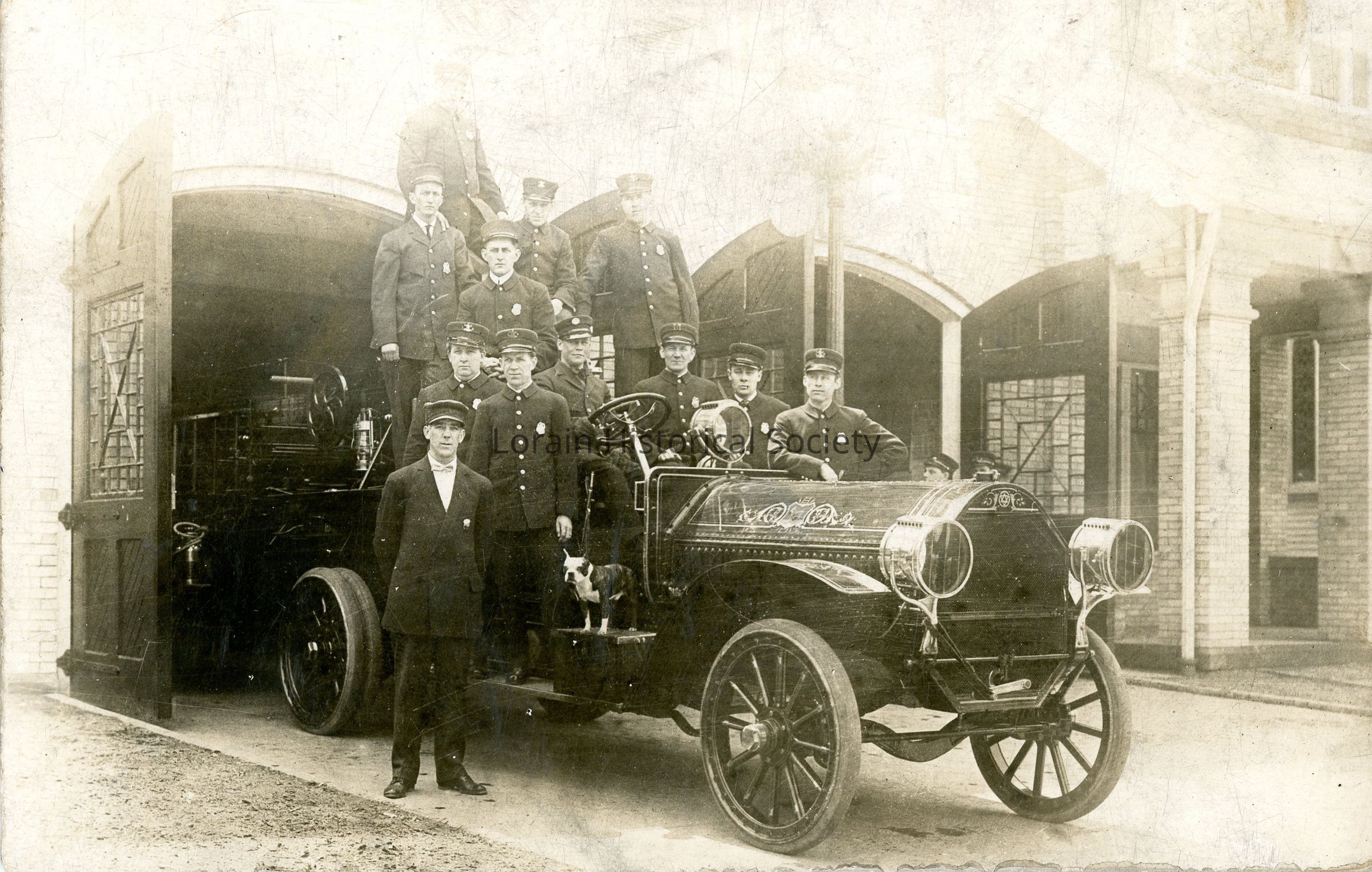 Black and White Postcard - No. 1 Fire Station with men and truck outside.
