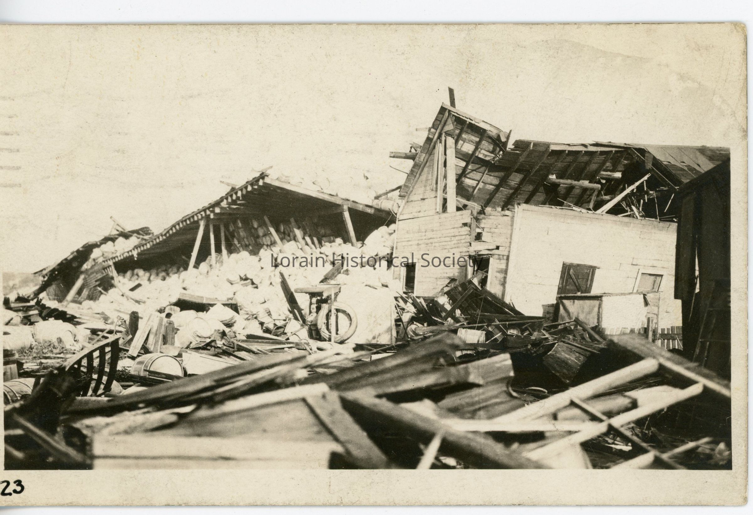 Postcard is view of ruins of houses/buildings after 1924 Tornado. Postcard does not have a caption.