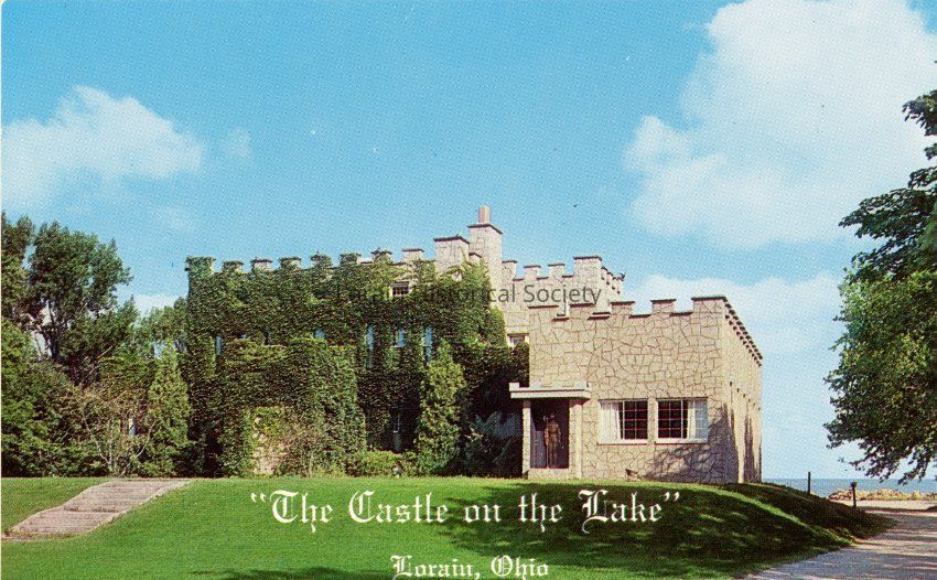 Also in file: Black and white photo of postcard, "The Castle on the Lake, Lorain, Ohio:.