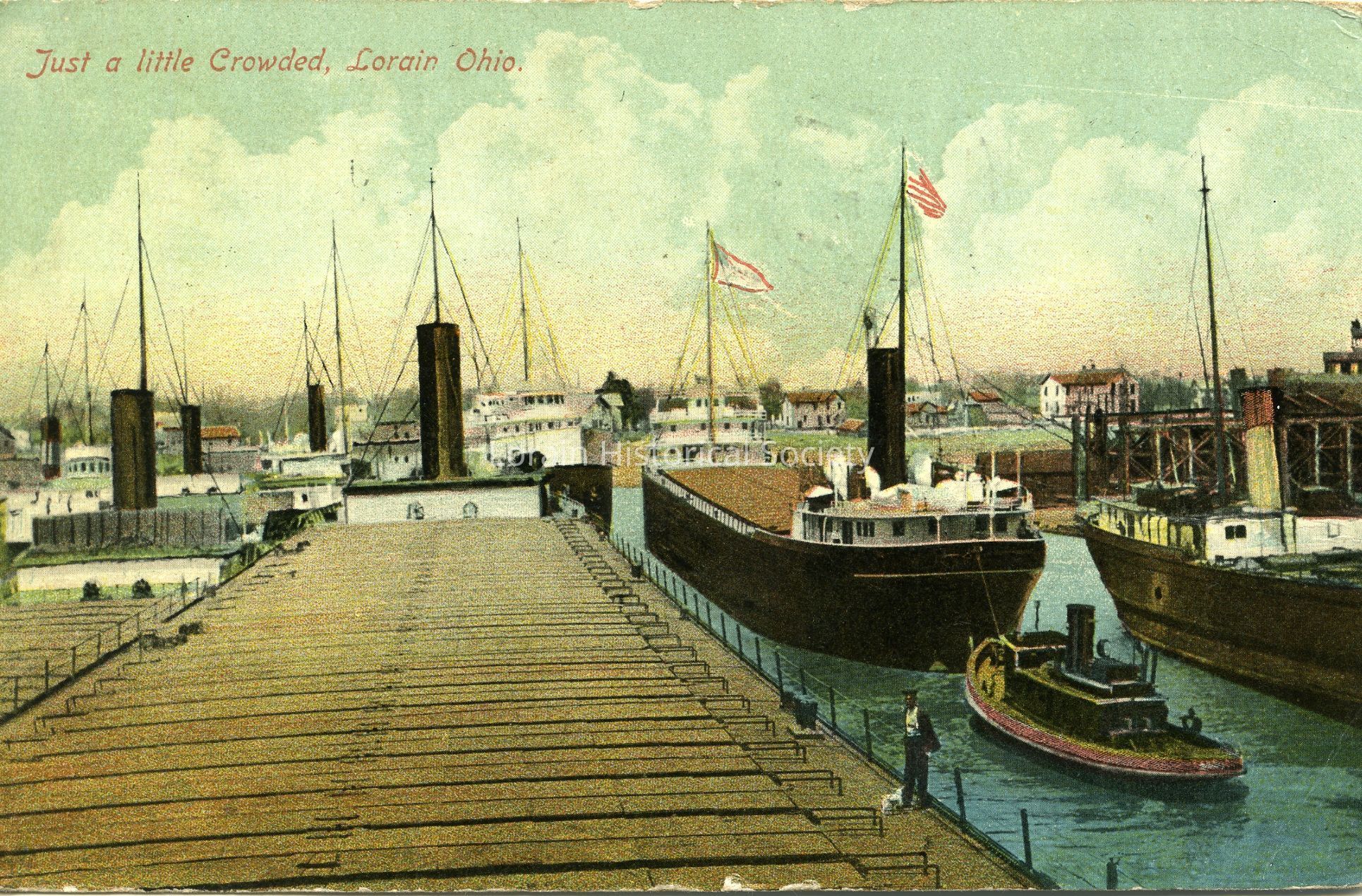07/28/2021 AMS: Color Postcard is view of dock and boat traffic. Postcard reads: :Just a Little Crowded. Lorain, Ohio."