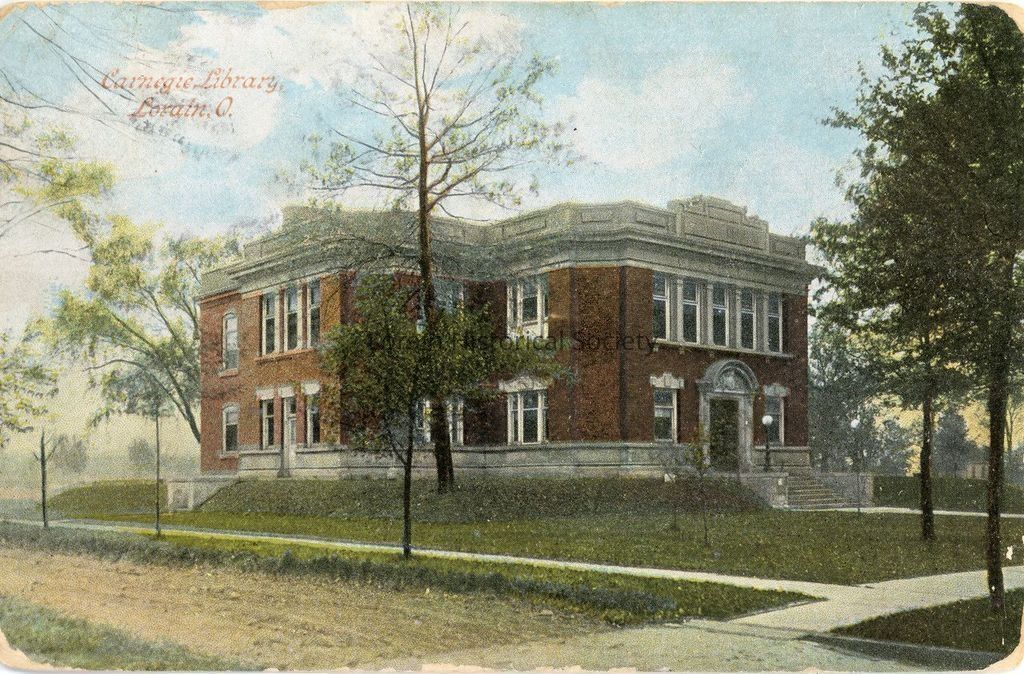 Postcard is color view of Carnegie Library, 329 West Tenth Street.