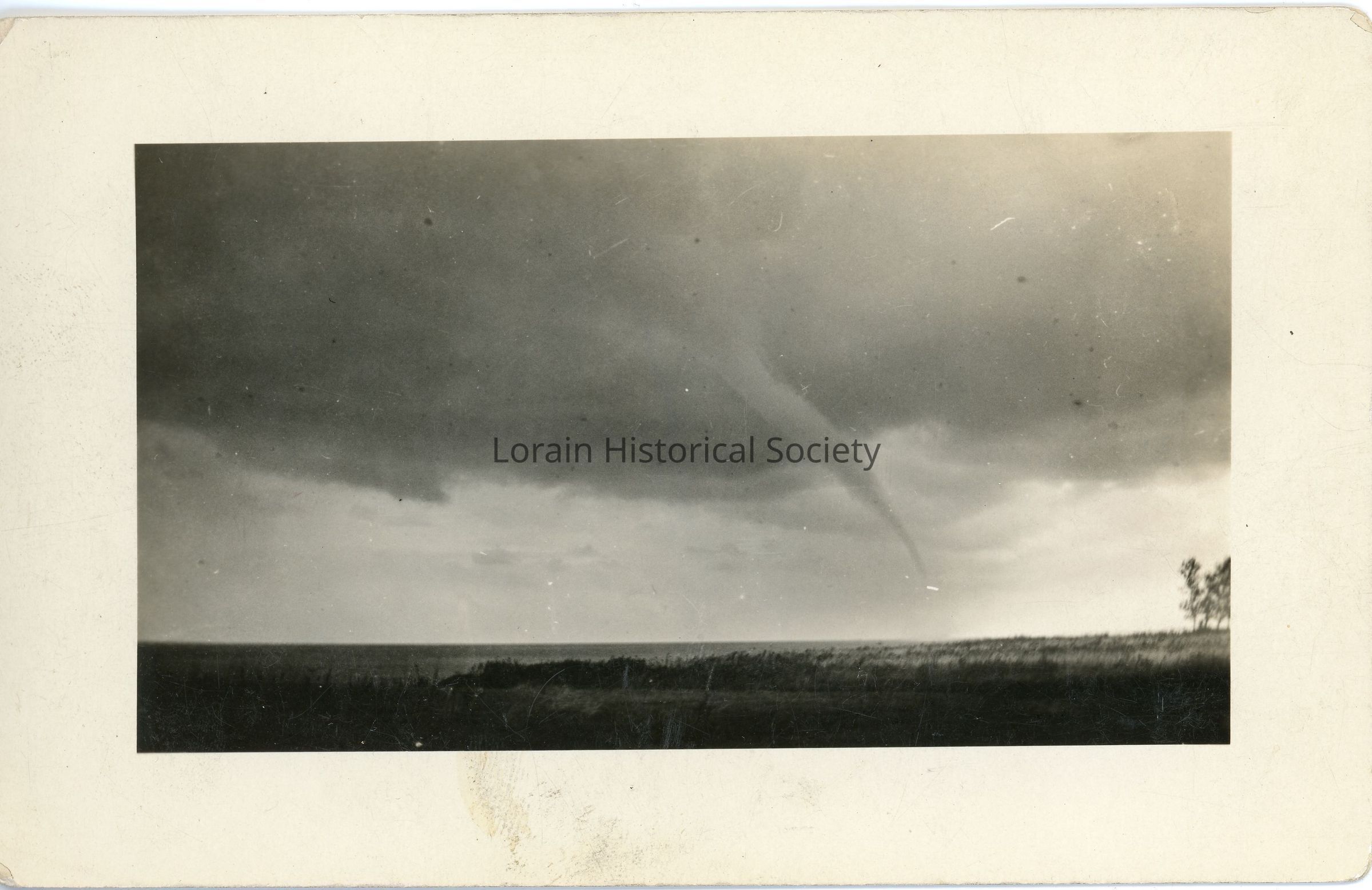 Postcard is black and white view of tornado over Lake Erie, June 28, 1924.