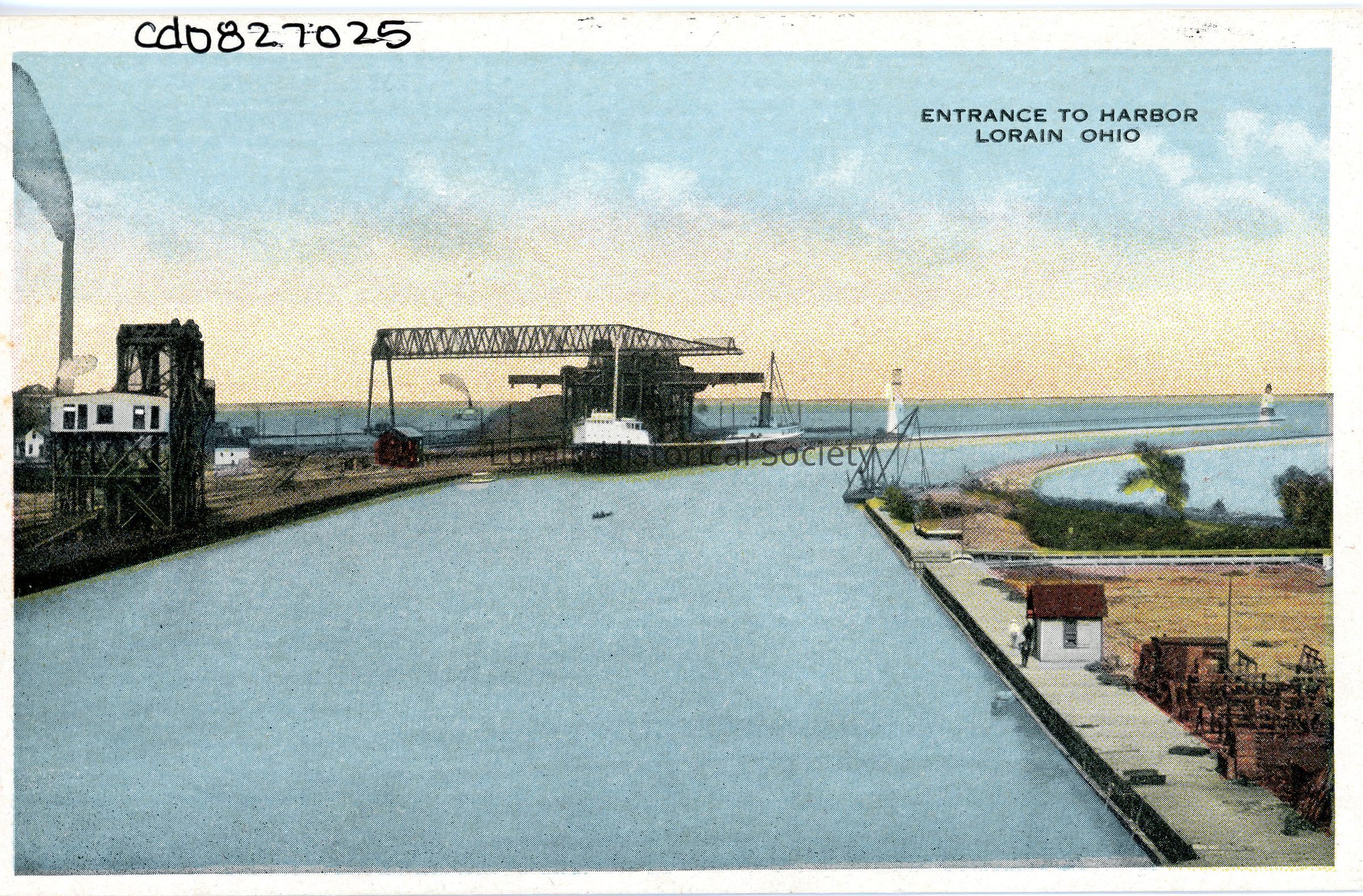 07/21/2021 AMS: cd0827025. Color Postcard is view of Lorain Harbor entrance showing coal dock. Postcard reads: "Entrance to Harbor, Lorain, Ohio." CA D2 F23Acquisition