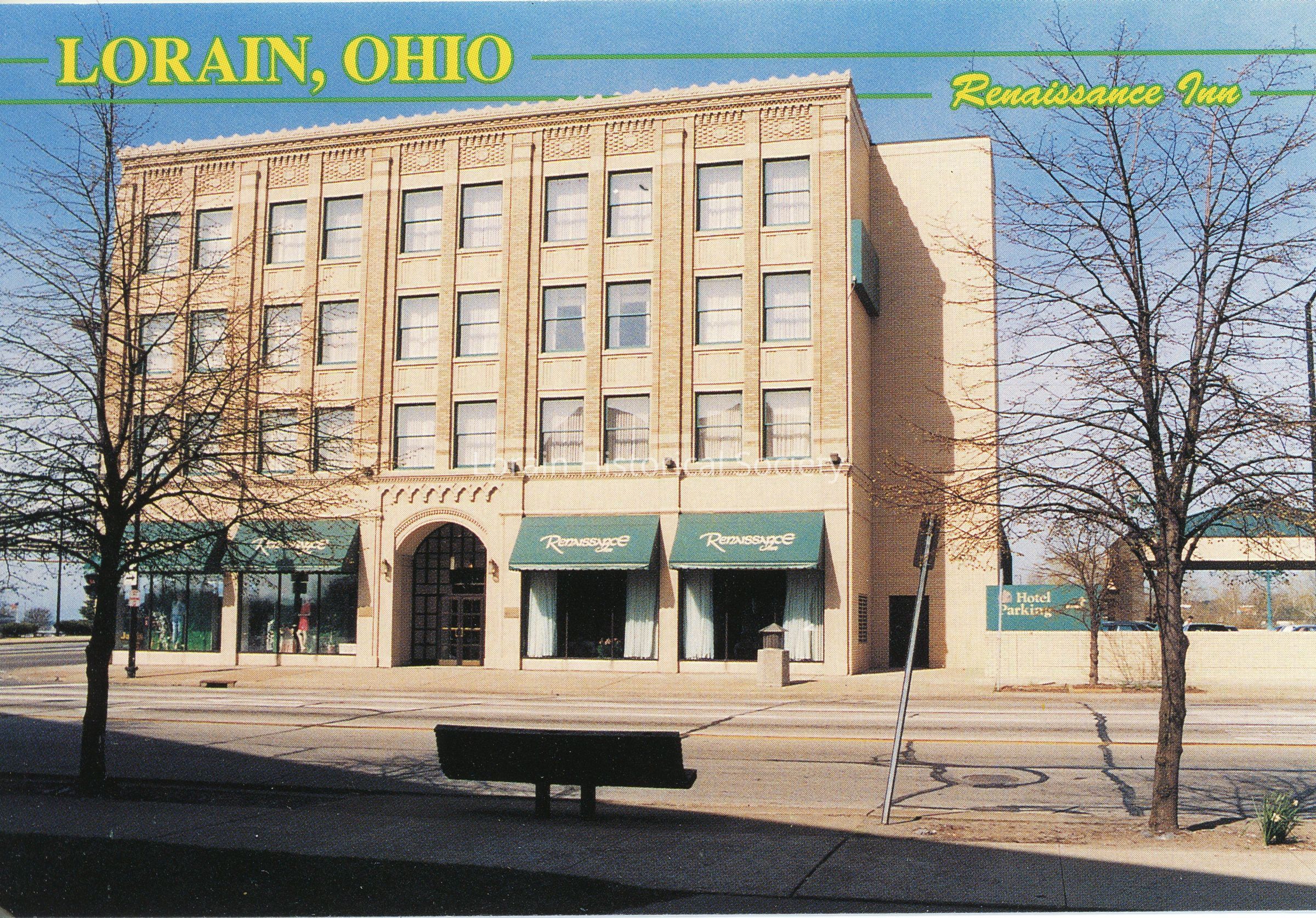 02/23/2022 AMS: Color Postcard is view of Renaissance Inn, corner of Broadway and West Erie Avenue. Postcard reads: "Lorain, Ohio. Renaissance Inn."Acquisition