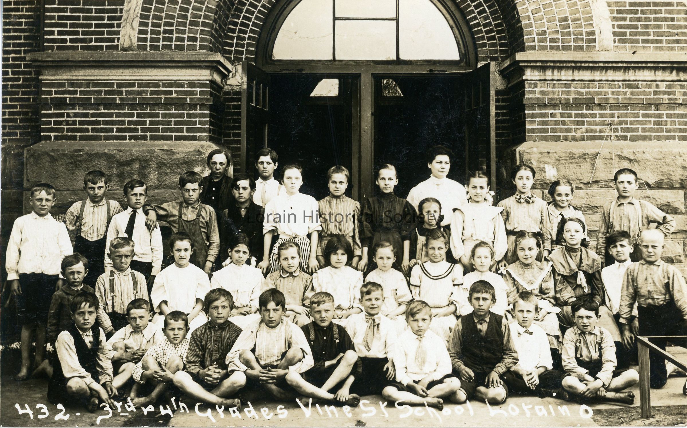 Black and white postcard c. 1912 of the third and fourth grade at Vine Street school, later to become Lincoln Elementary.Acquisition