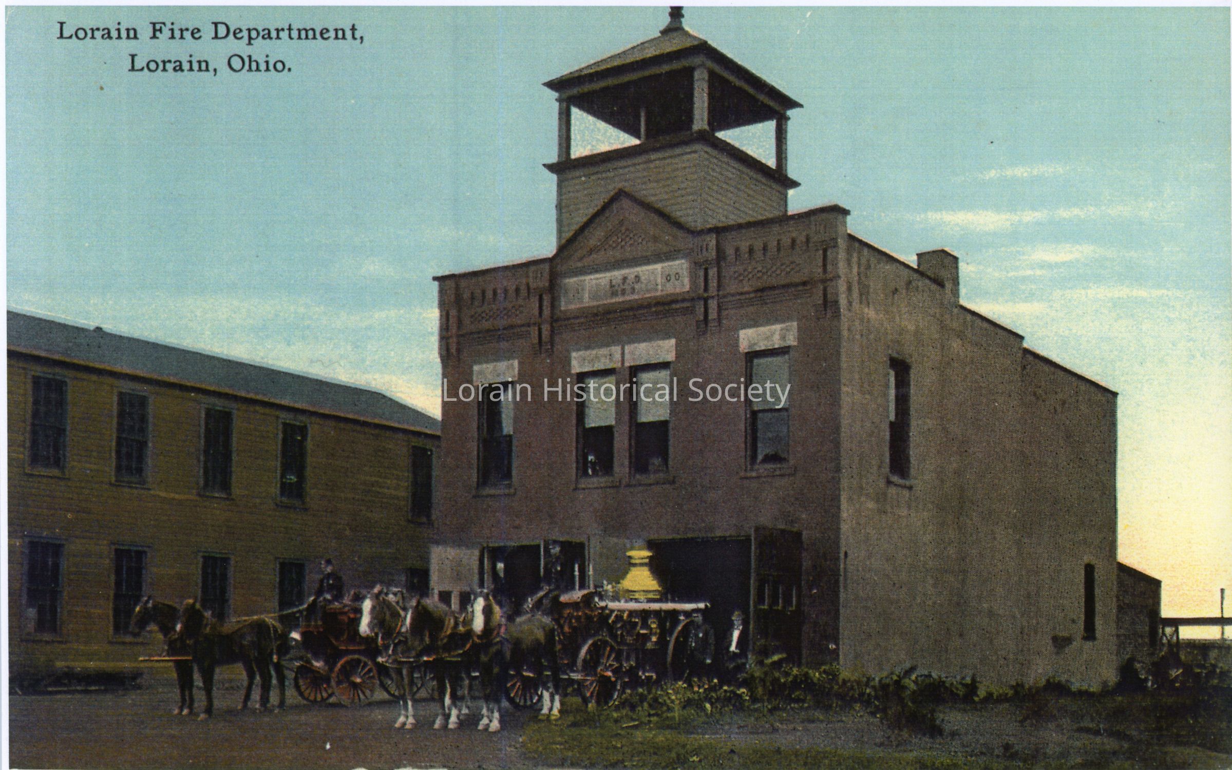 Postcard reads: "Hook and Ladder Company, Lorain, Ohio".