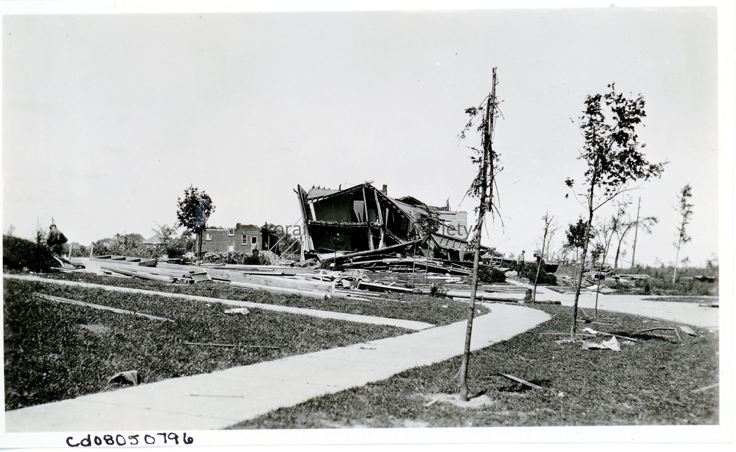 Photograph is black and white view of houses on Mildred Avenue showing damage and collapse from 1924 Tornado. L to R: 1805 West Erie Avenue, Myrtle and William J. Donnelly Home (Mr. Donnelly was President, The W. J. Donnelly Co. on the corner of West Fourteenth Street and Oberlin Avenue); 700 Mildred Avenue (corner of Mildred Avenue and South Lakeview Boulevard), Monetta and Fred S. Klein Home.Acquisition