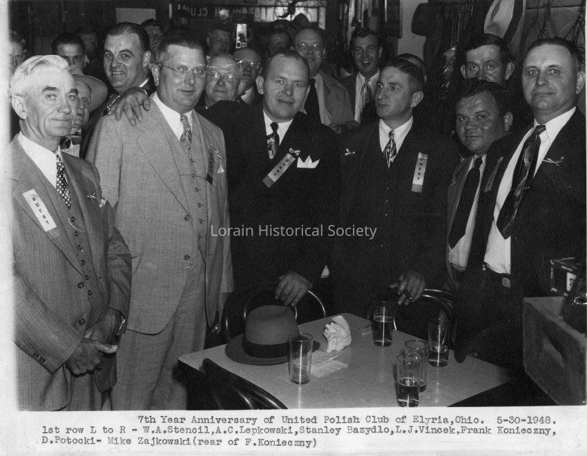 United Polish Club Anniversary Stencil, W.A. Lepkowski, A.C. Bazydlo, Stanley Vincek, L.J. Konieczny, Frank Unknown People Probably members of the Lorain U.P.C. who attended the Elyria U.P.C.'s celebration.