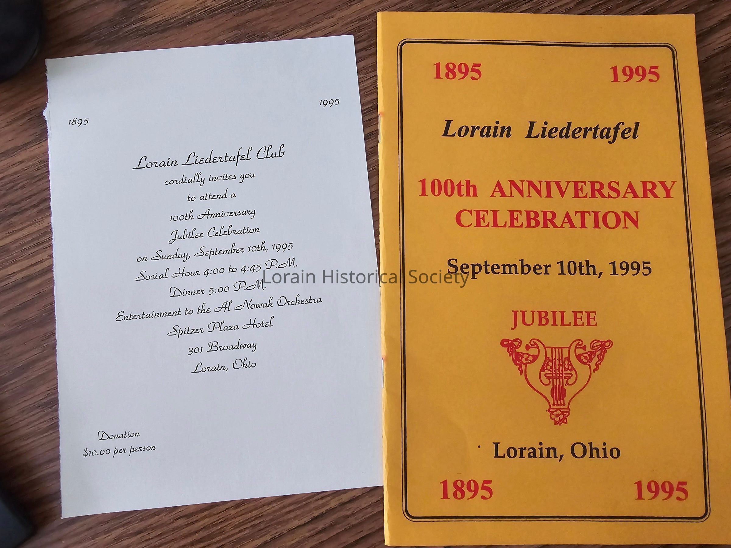 Lorain Liedertafel Program 100th Anniversary (1895-1995) and invitation