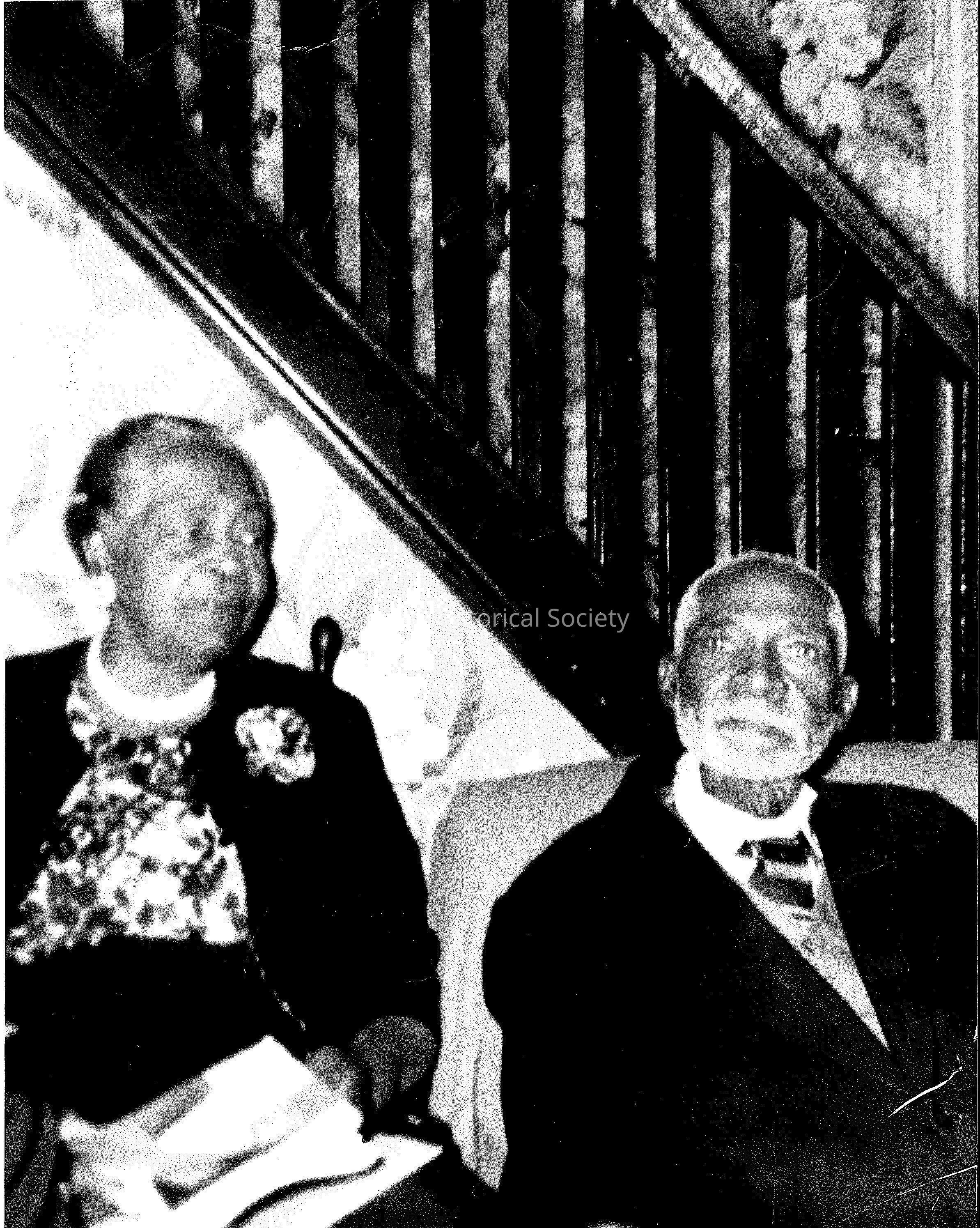 Photo of the maternal grandparents of Jennie Drummer, oral history interviewee, taken at their home on 209 E. 32nd Street in Lorain approximately 1956.Collection