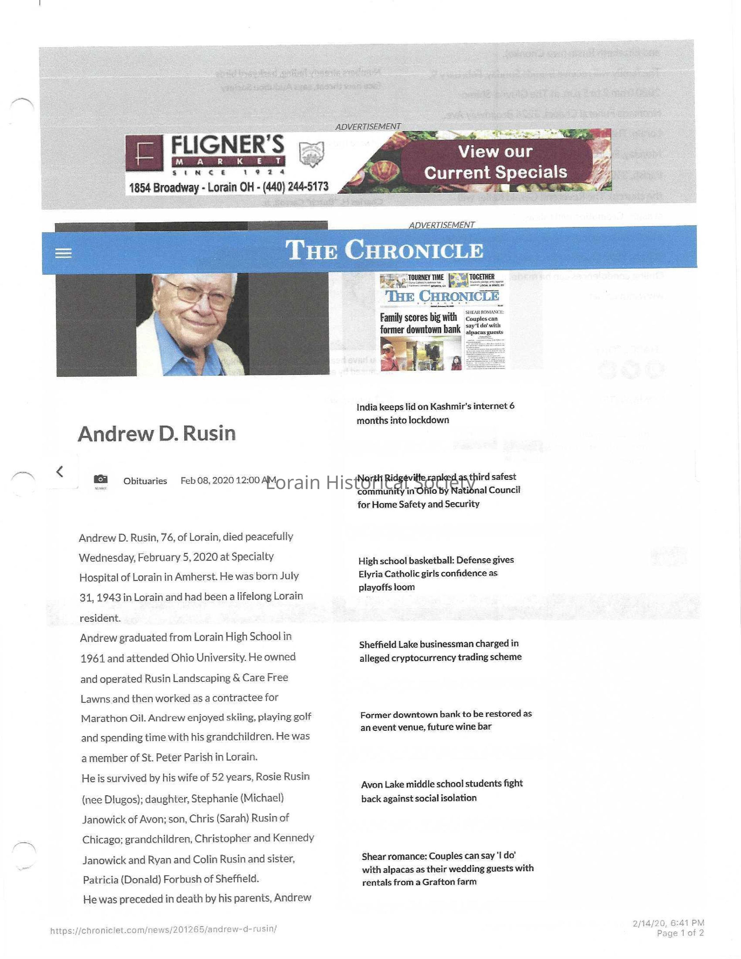 Rusin, Andrew D. obit