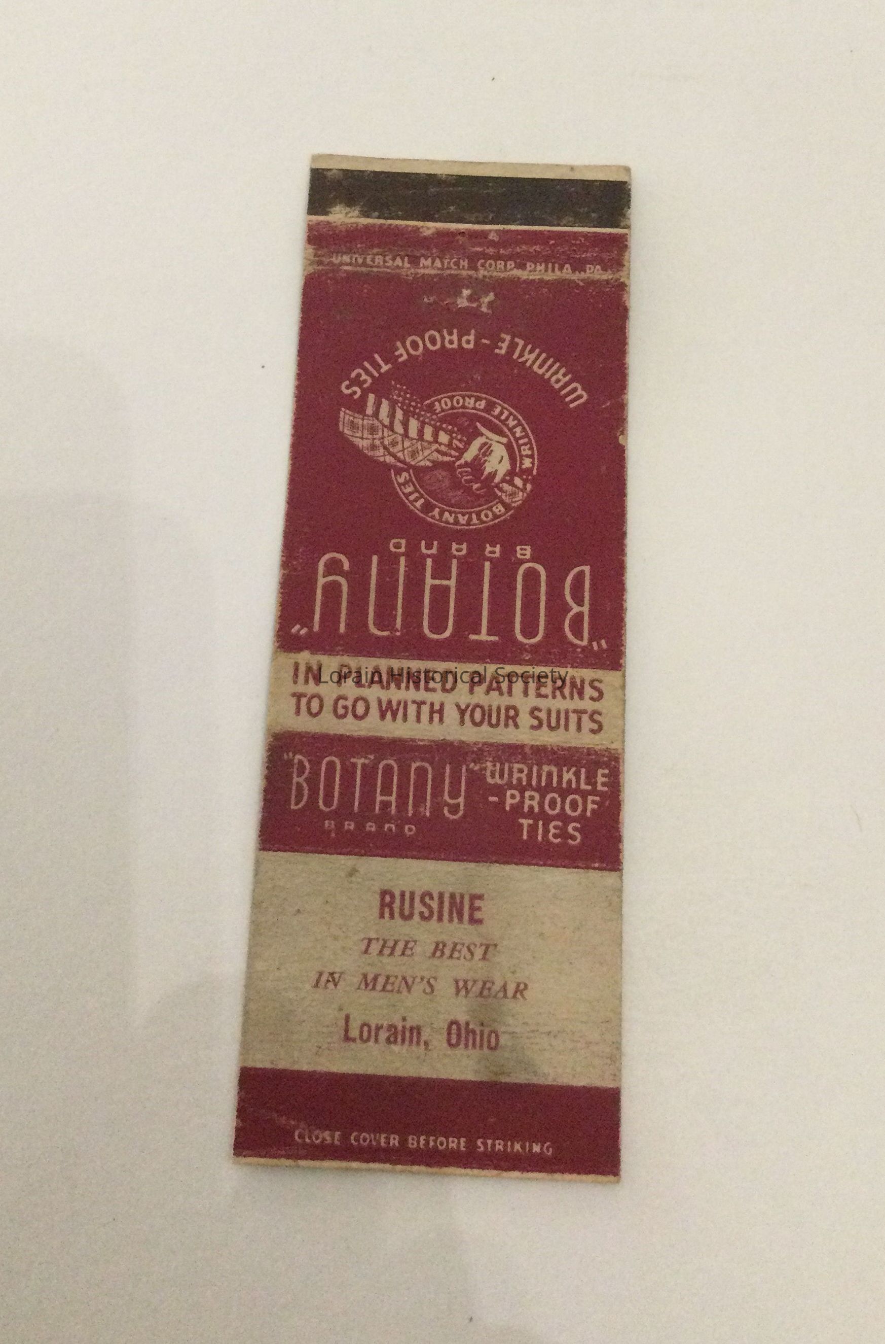 A collection of matchbook covers advertising Lorain, Ohio businesses, social clubs, bars, restaurants, associations from the 1930's through the 1950's.Acquisition
