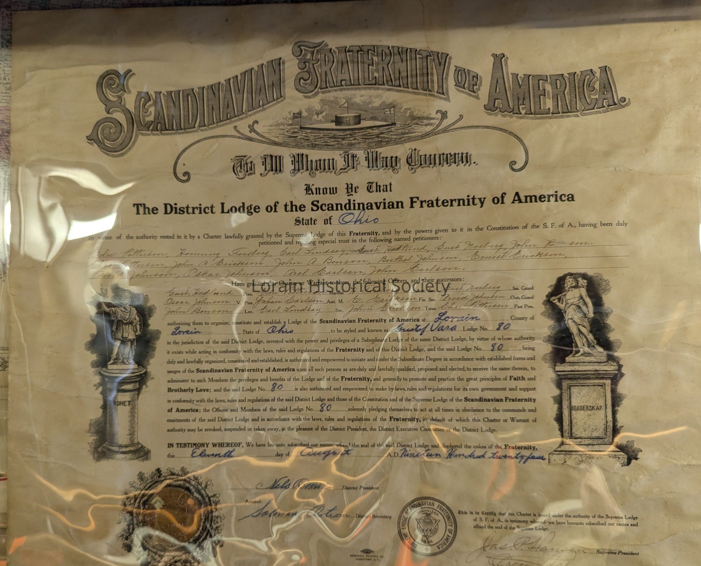 Framed "Scandinavian Fraternity of America" Charter 8/11/25