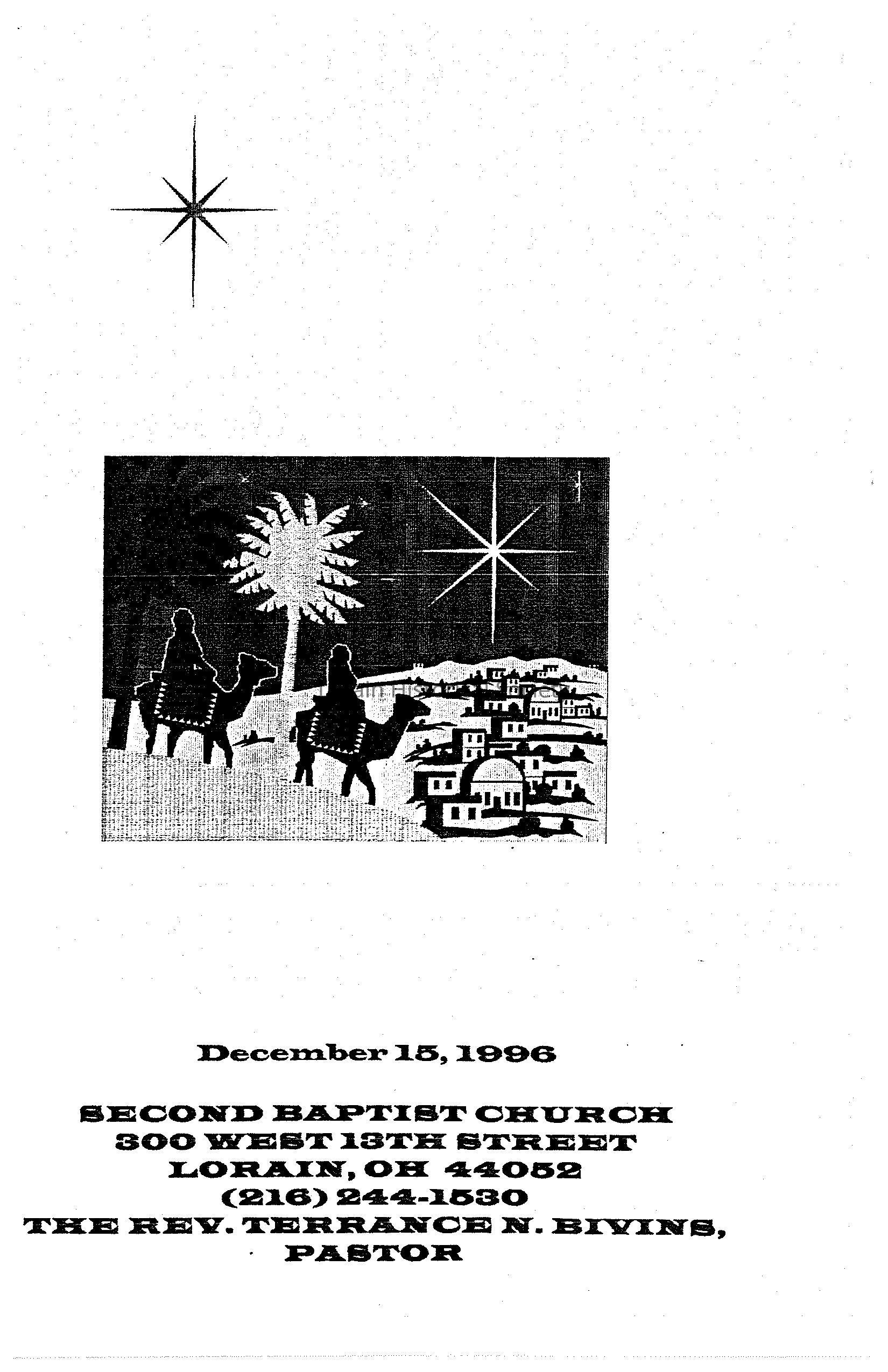 This is a program from the church service held at Second Baptist Church on Dec 15, 1996.Collection