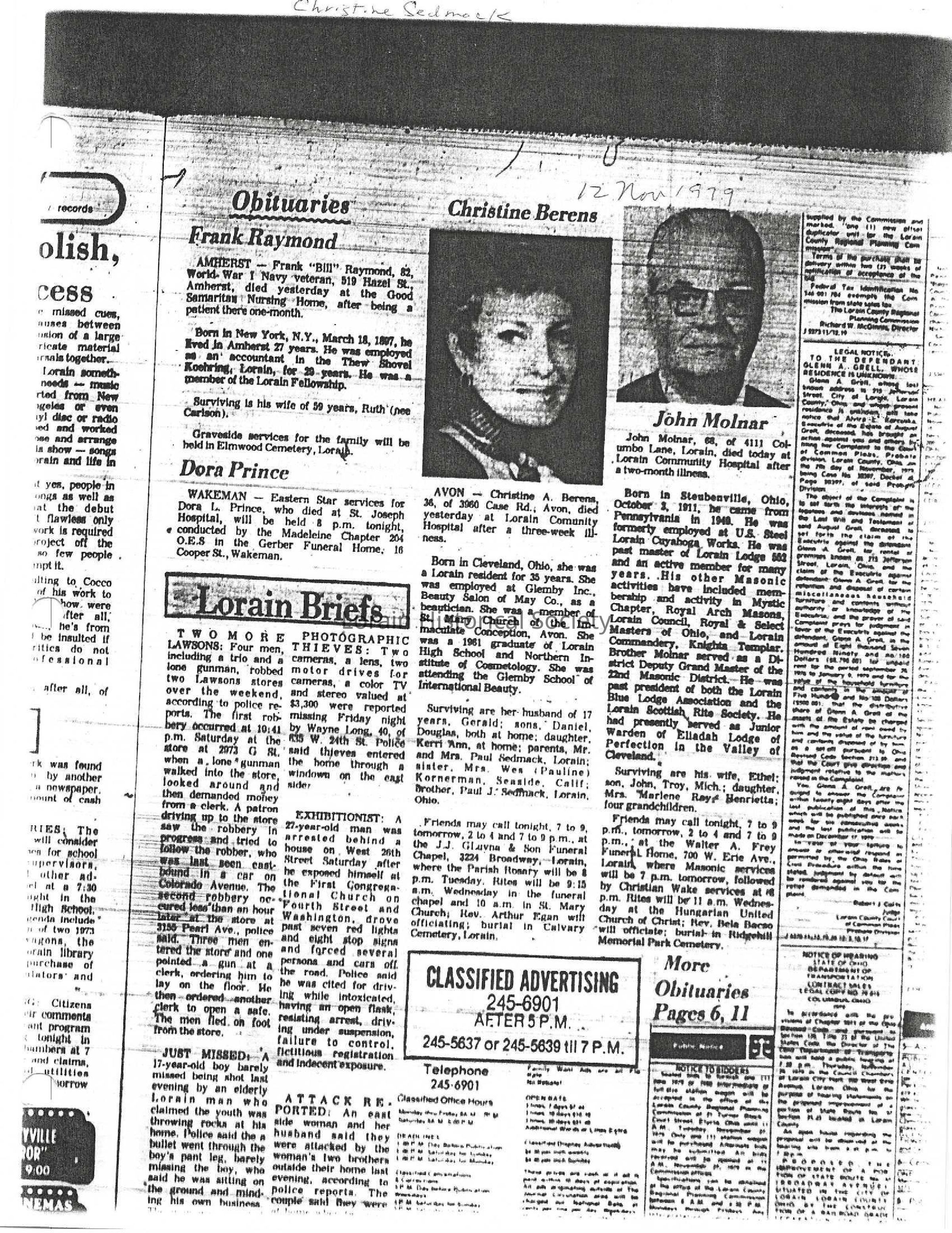 Sedmack, Christine A. Berens obit