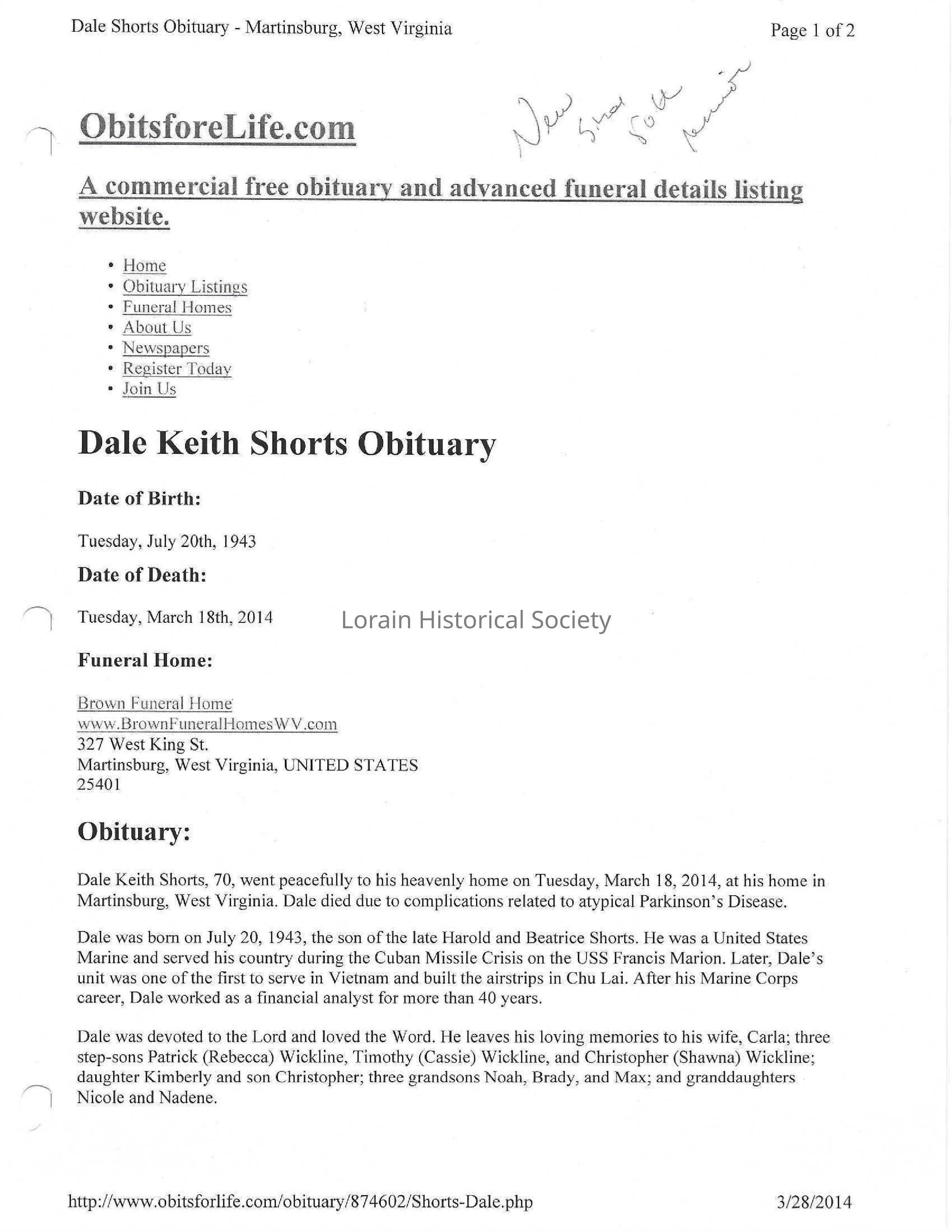 Shorts, Dale Keith obit