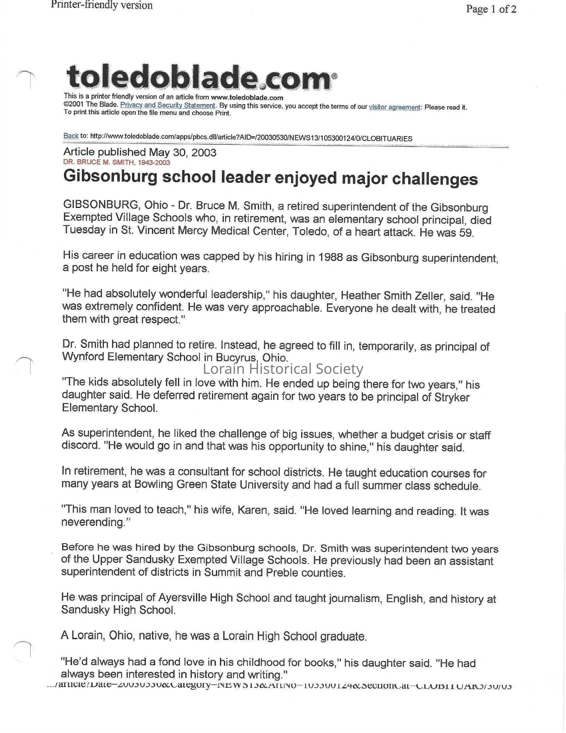 Smith, Dr. Bruce M. obit