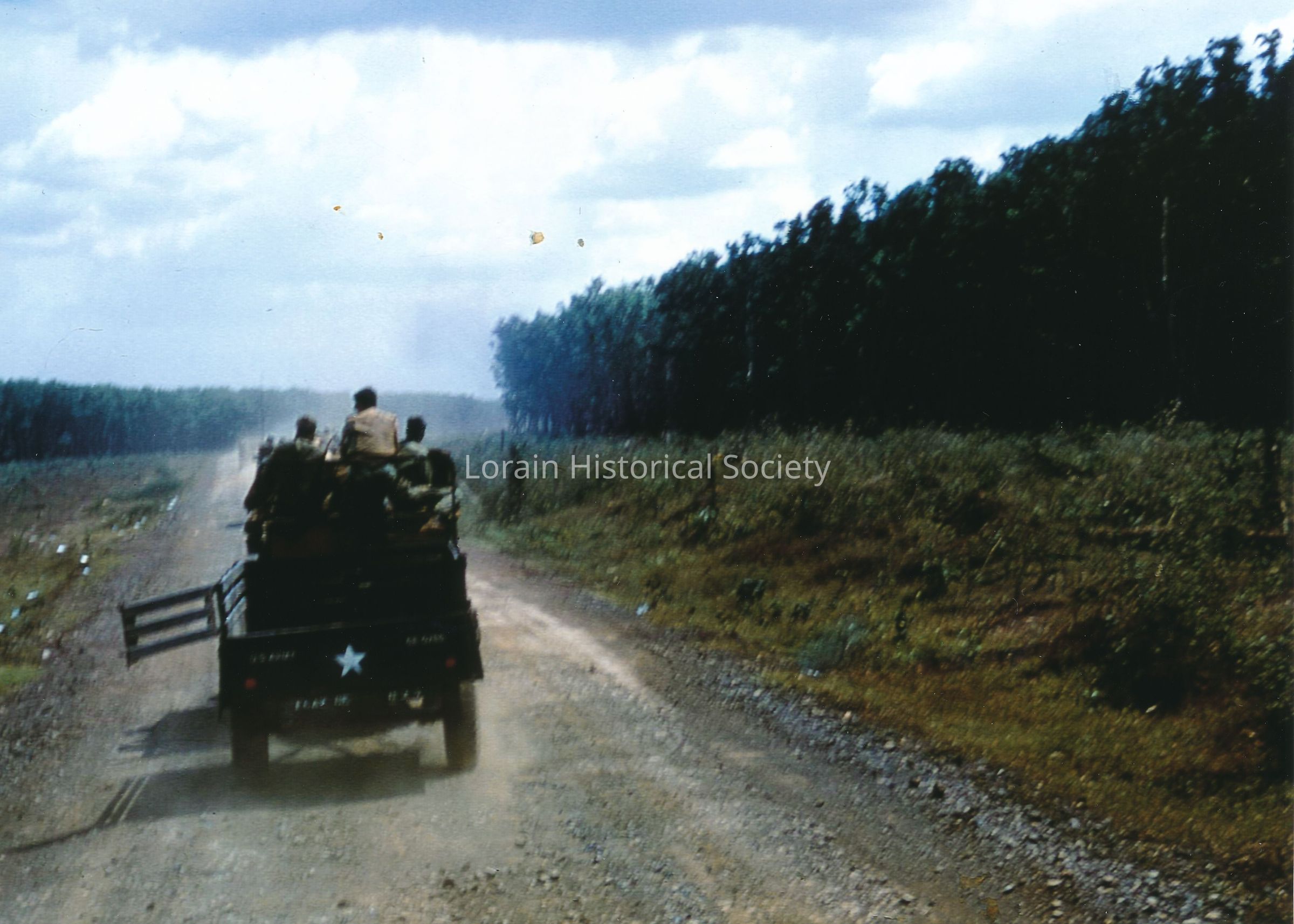 Photo of soldiers in a truck during a U.S. Army convoy in the Saigon area of Vietnam. Ralph DeJesus was at the end of the convoy and had just arrived to Vietnam. No one else was on the roads.Collection