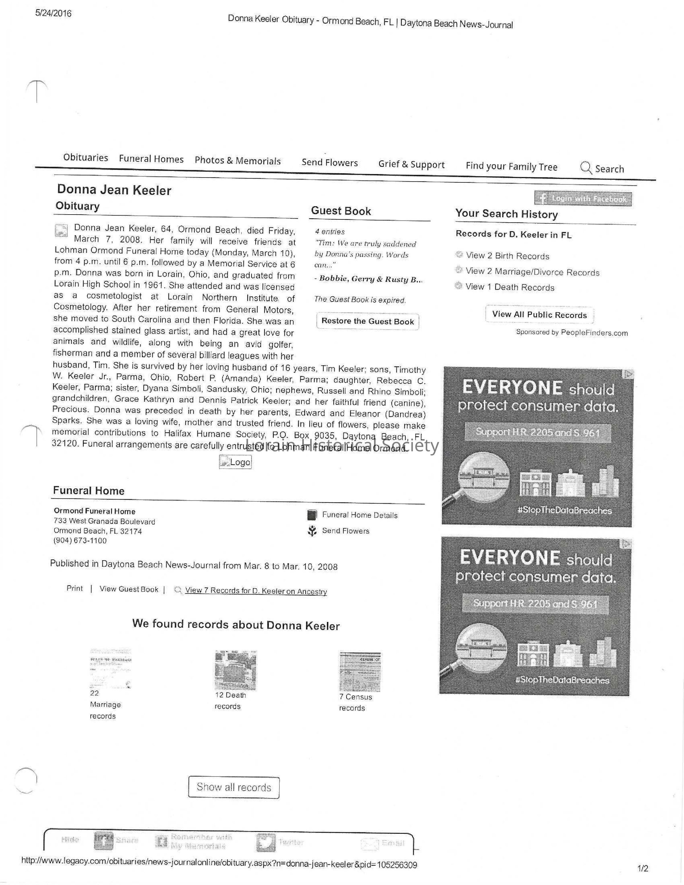 Sparks, Donna Jean Keeler obit