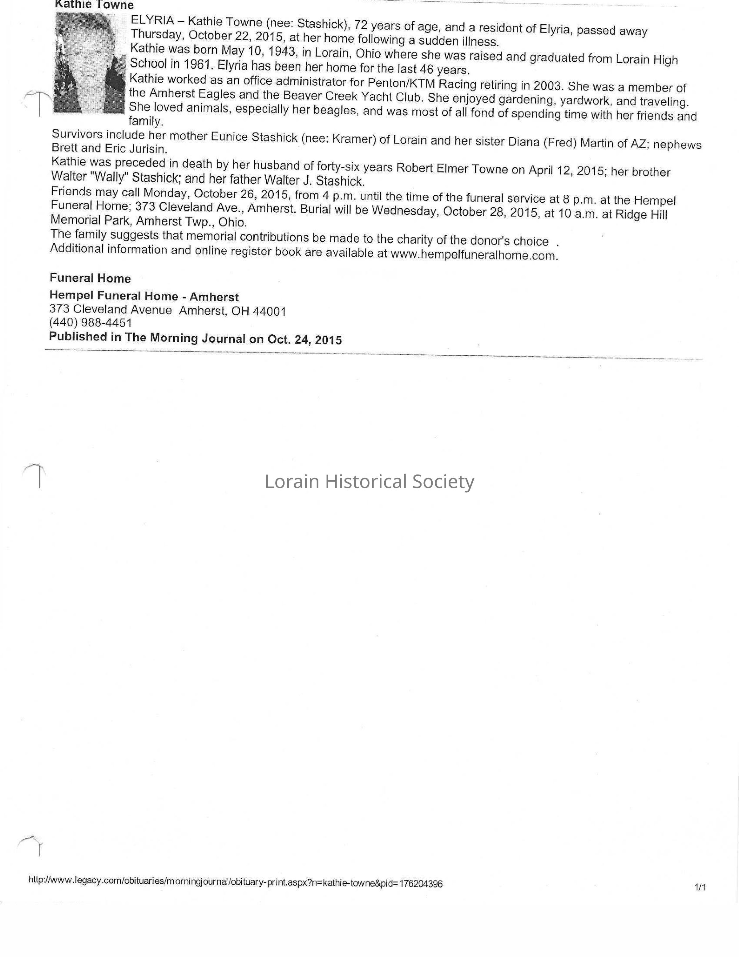 Staschick, Kathie Towne obit