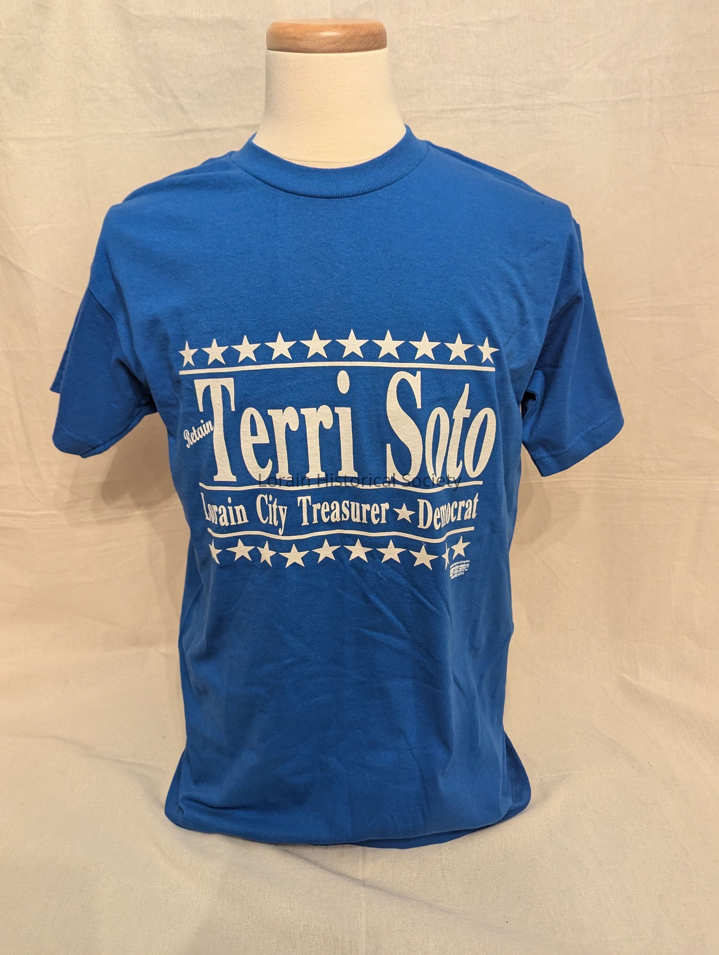 Royal blue with white star graphics and lettering, repeated on back; Retain Terri Soto Lorain City Treasurer - DemocratContext