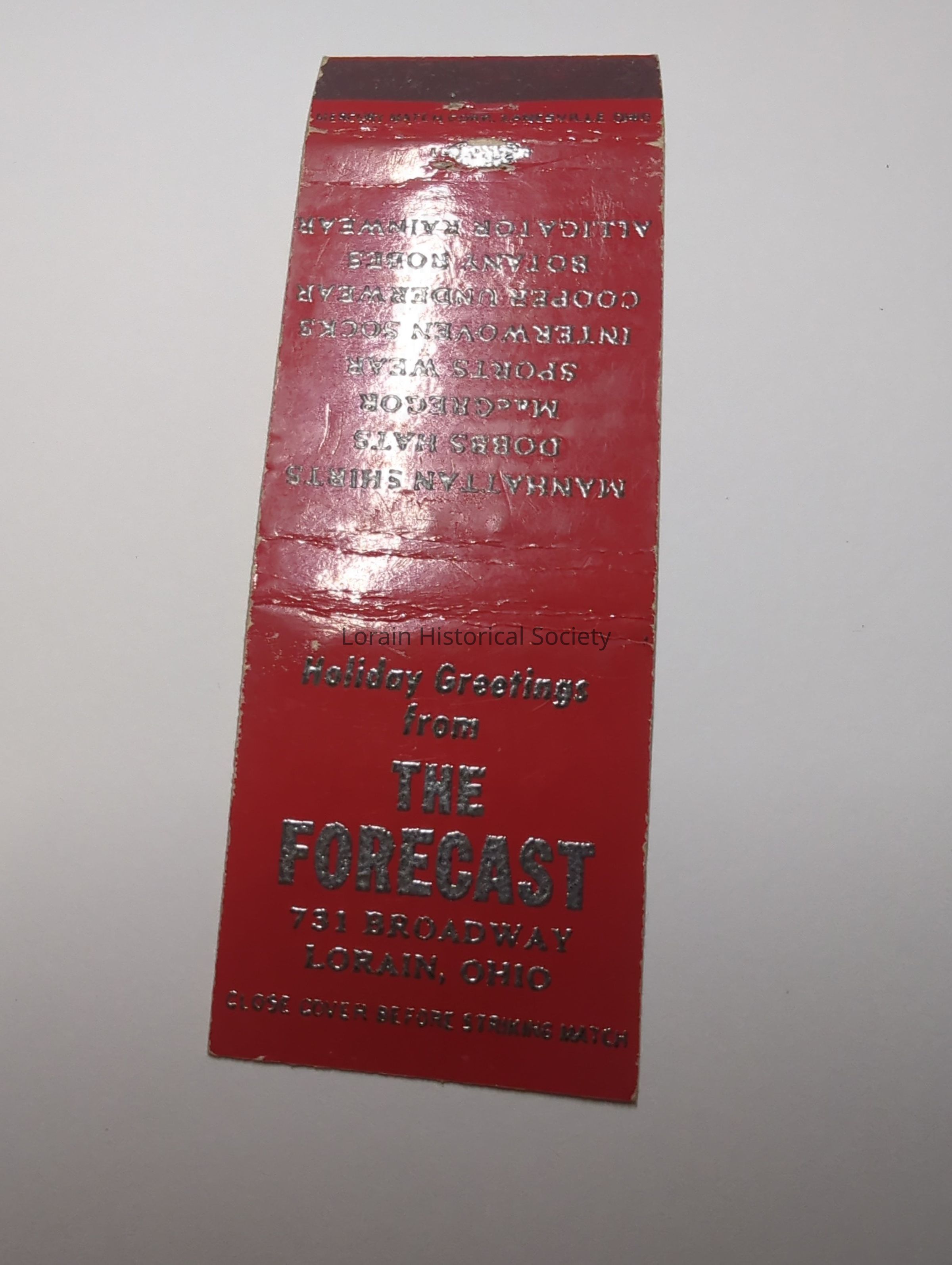 A collection of matchbook covers advertising Lorain, Ohio businesses, social clubs, bars, restaurants, associations from the 1930's through the 1950's.Acquisition
