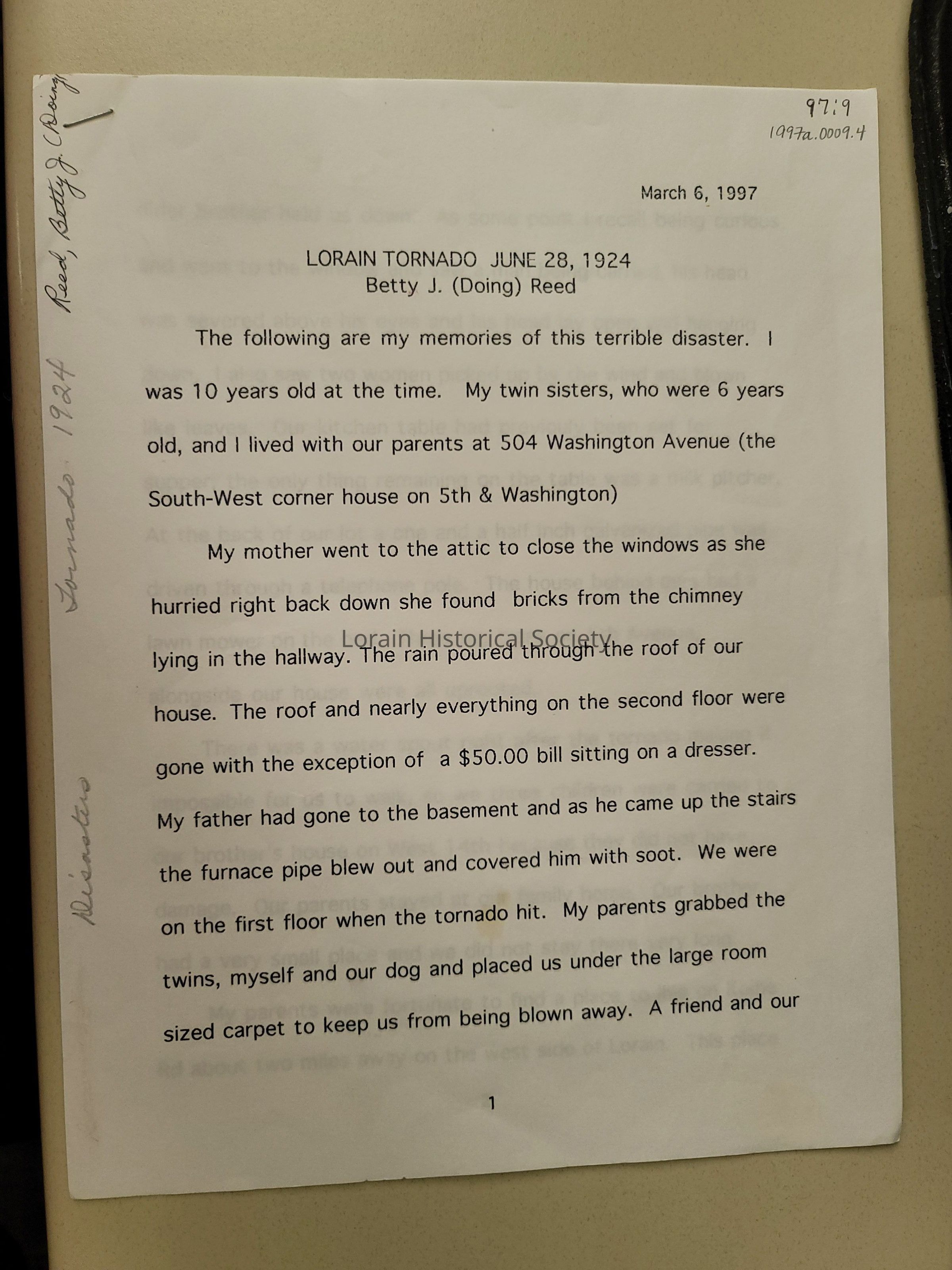 Tornado Account - Betty J. (Doing) ReedEntry/Object ID