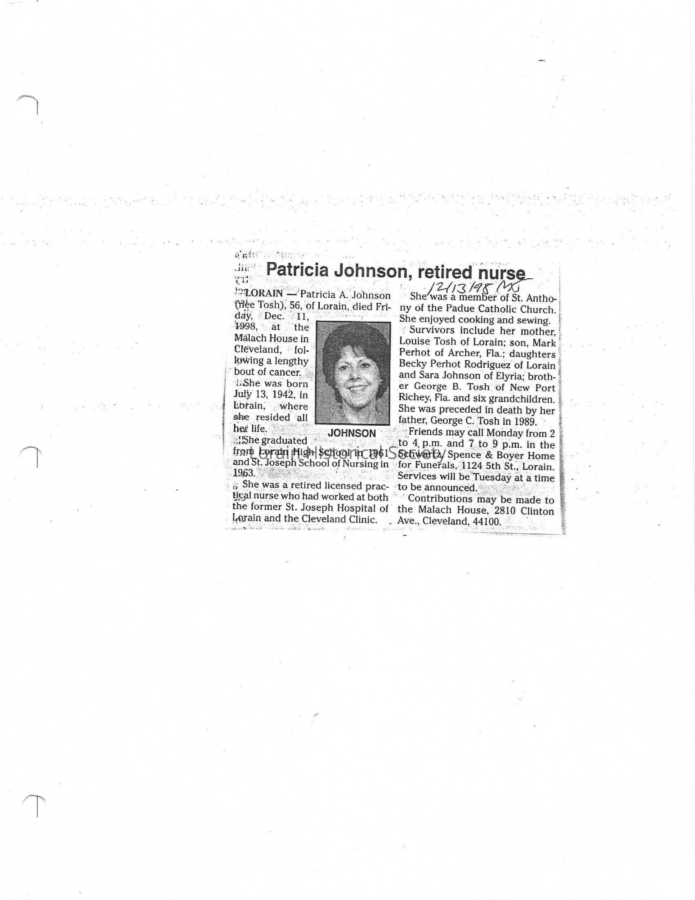 Tosh, Patrifia A. Johnson obit