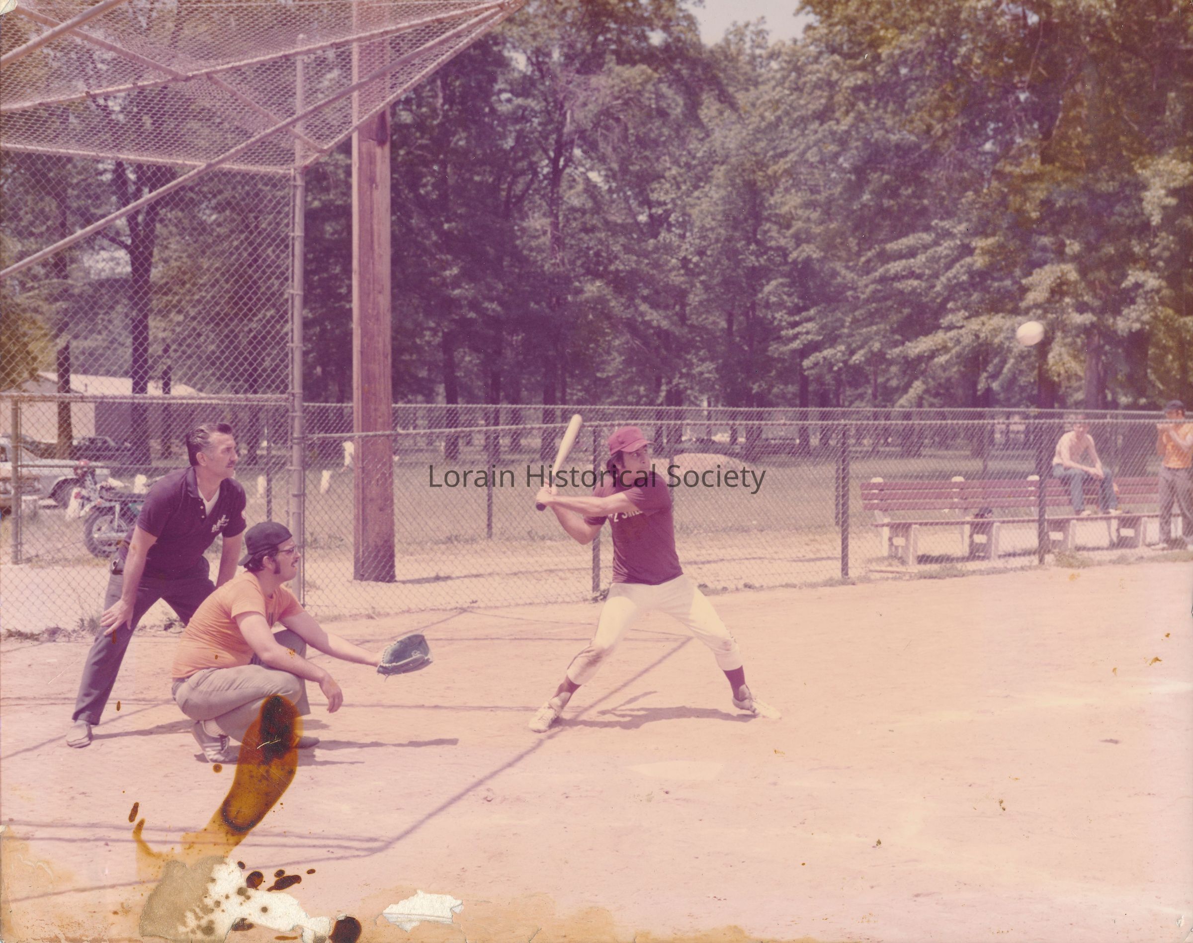 Photo of Ray Pagán batting during a U.S. Steel softball game at Oakwood Park in Lorain, Ohio. Different departments at U.S. Steel had their own softball teams and played against each other. The winning team would become the champions of the factory. Mr. Pagán had recently finished his military service with the U.S. Marine Corps and was working at U.S. Steel. Mr. Pagán was playing for the "3 Seamless" department's team.Collection