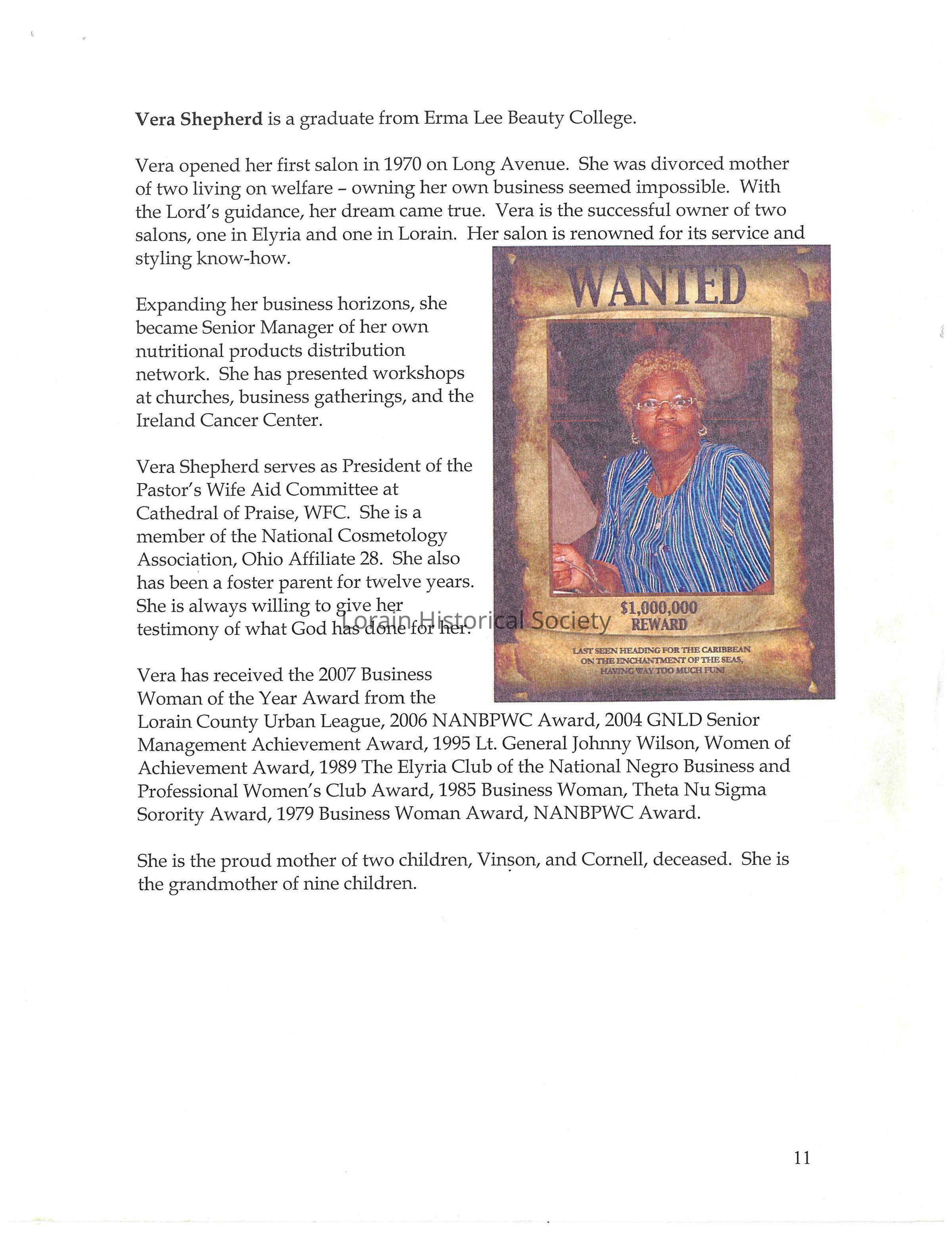 Bio for Vera Shephard, owner of Vera's Beauty Salon