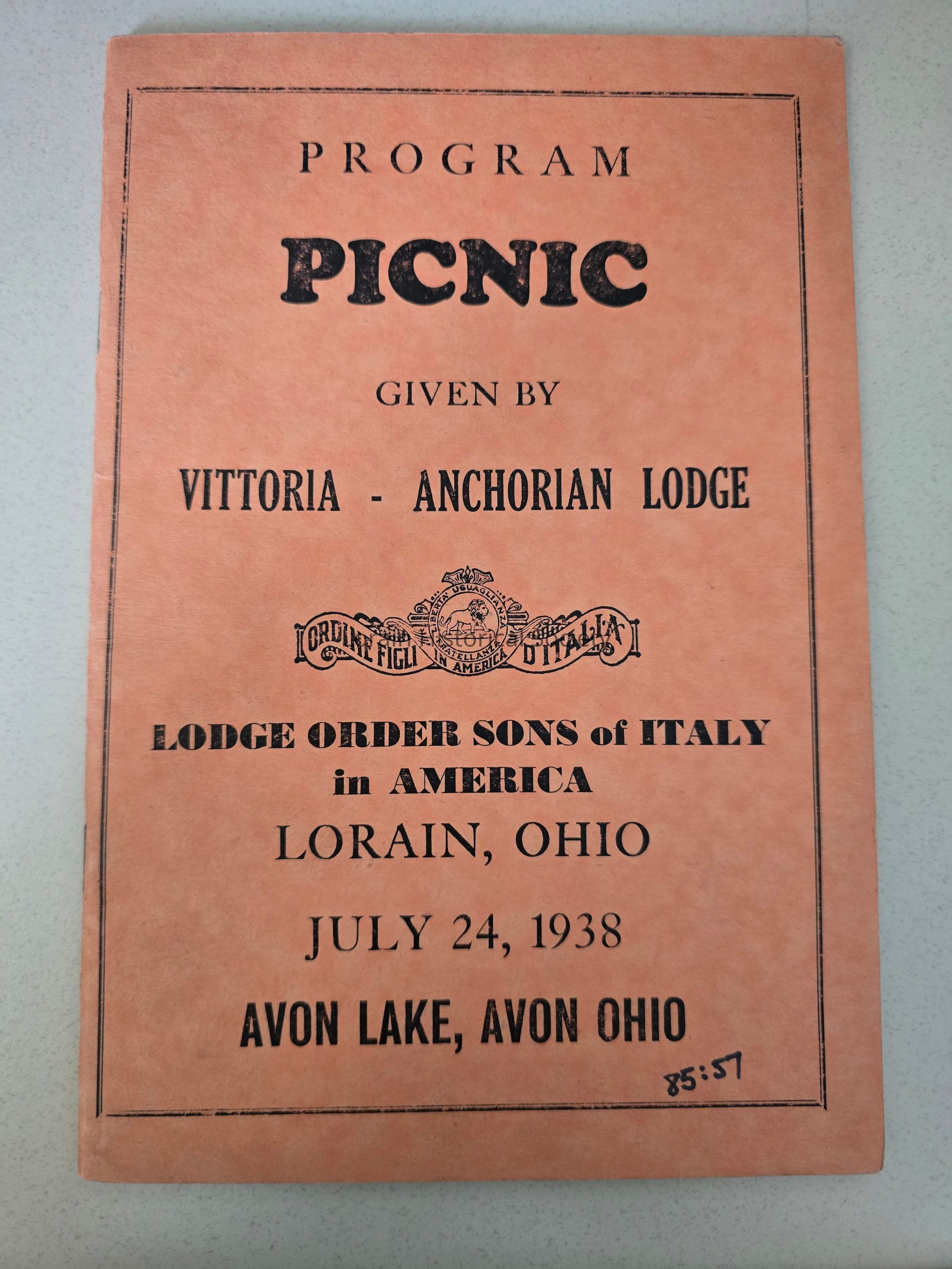 Program booklet for Picnic given by Vittoria-Anchorian Lodge - July 24, 1938