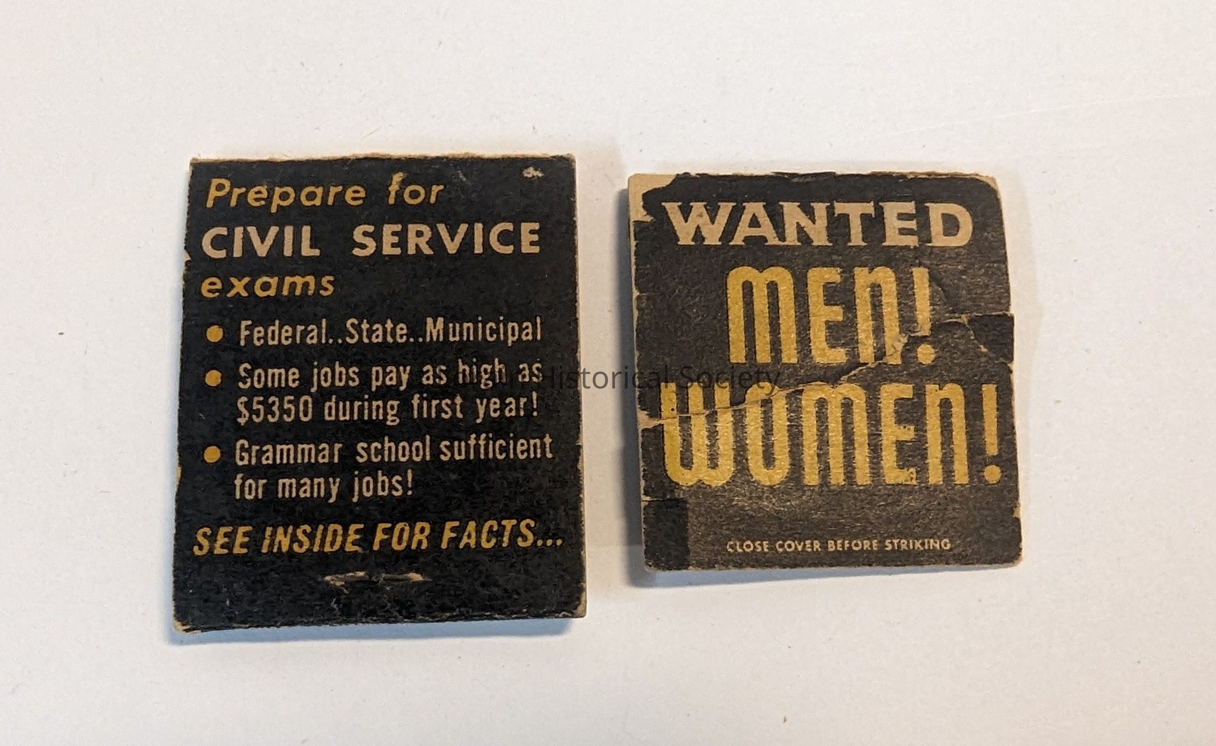 Match folder "Wanted Men! Women!" Send for information "Civil Service Positions and Salaries."Collection