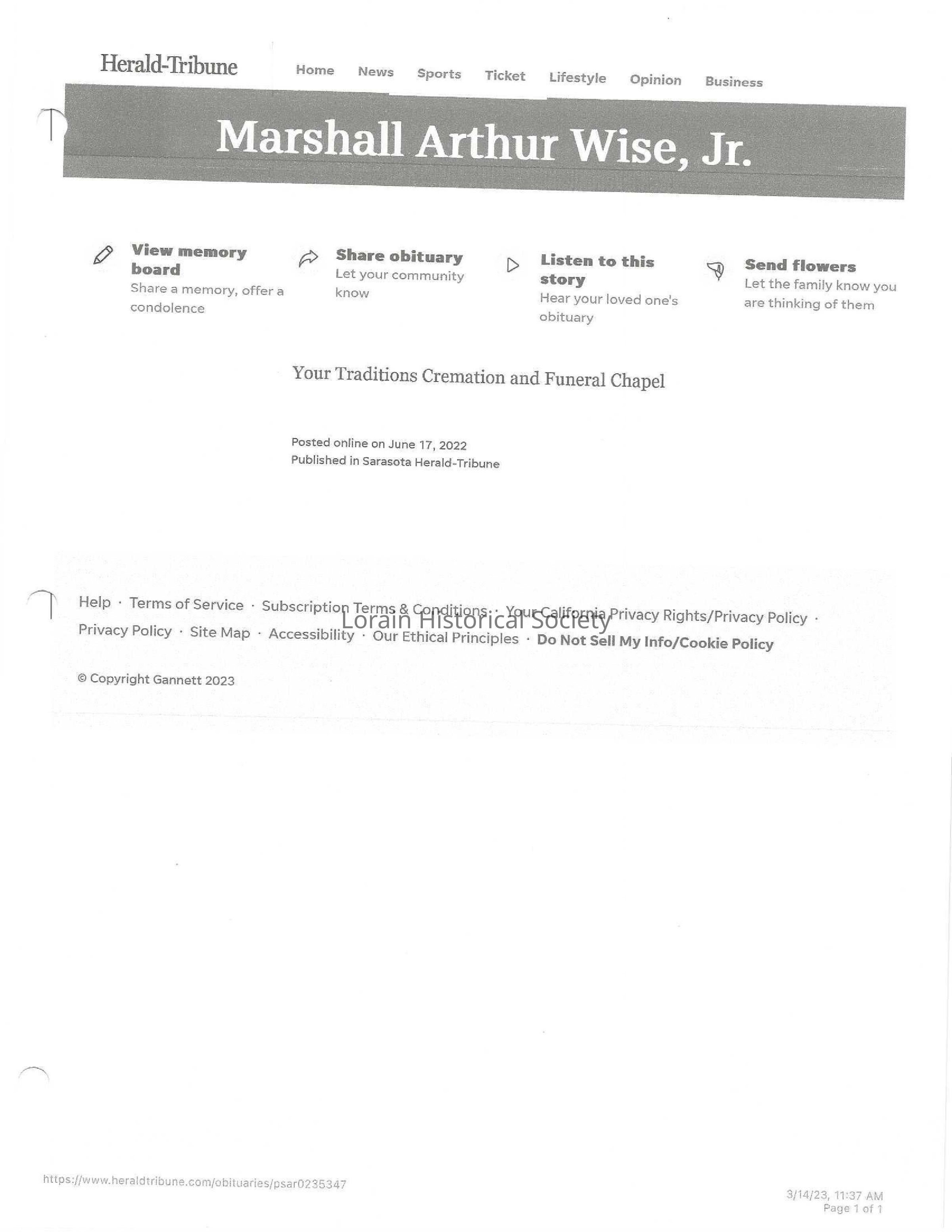Wise, Marshall Arthur obit