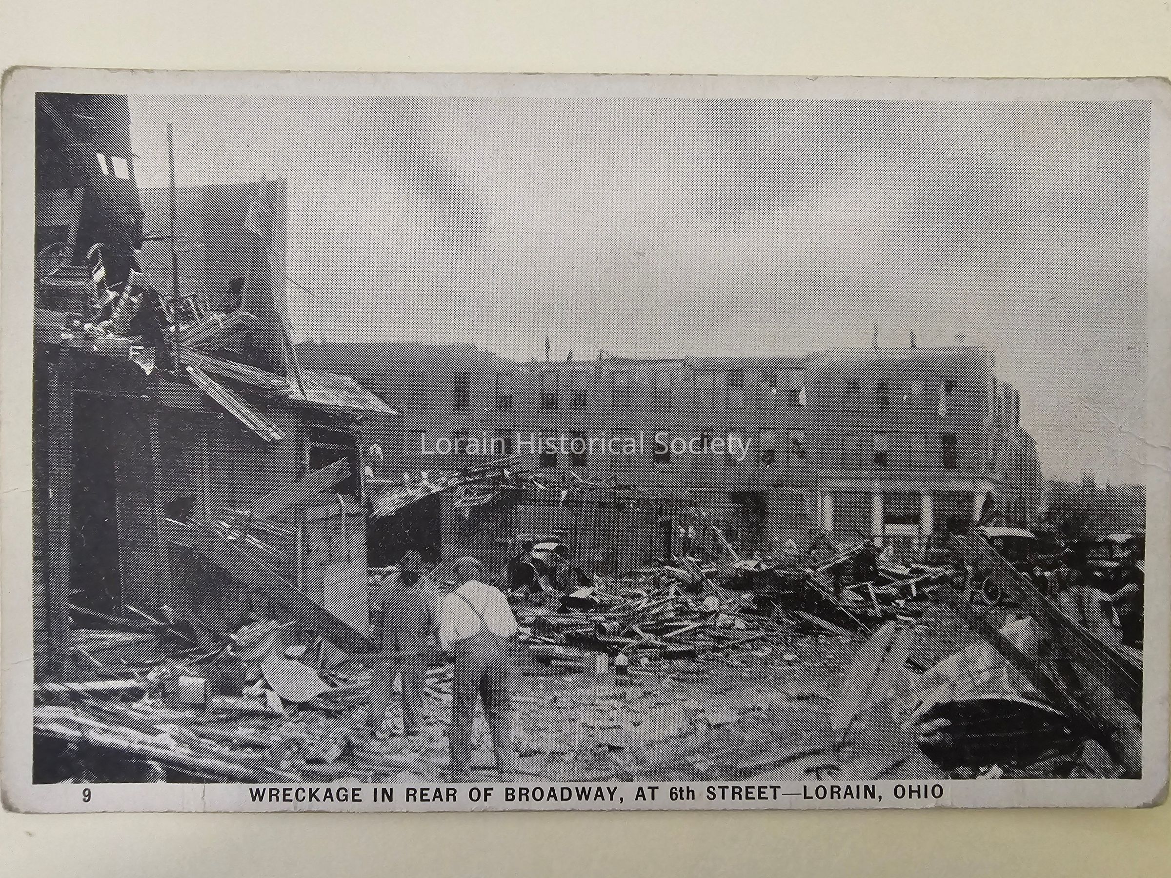 Postcard 9 - Wreckage in rear of Broadway, at 6th Street - Lorain, Ohio