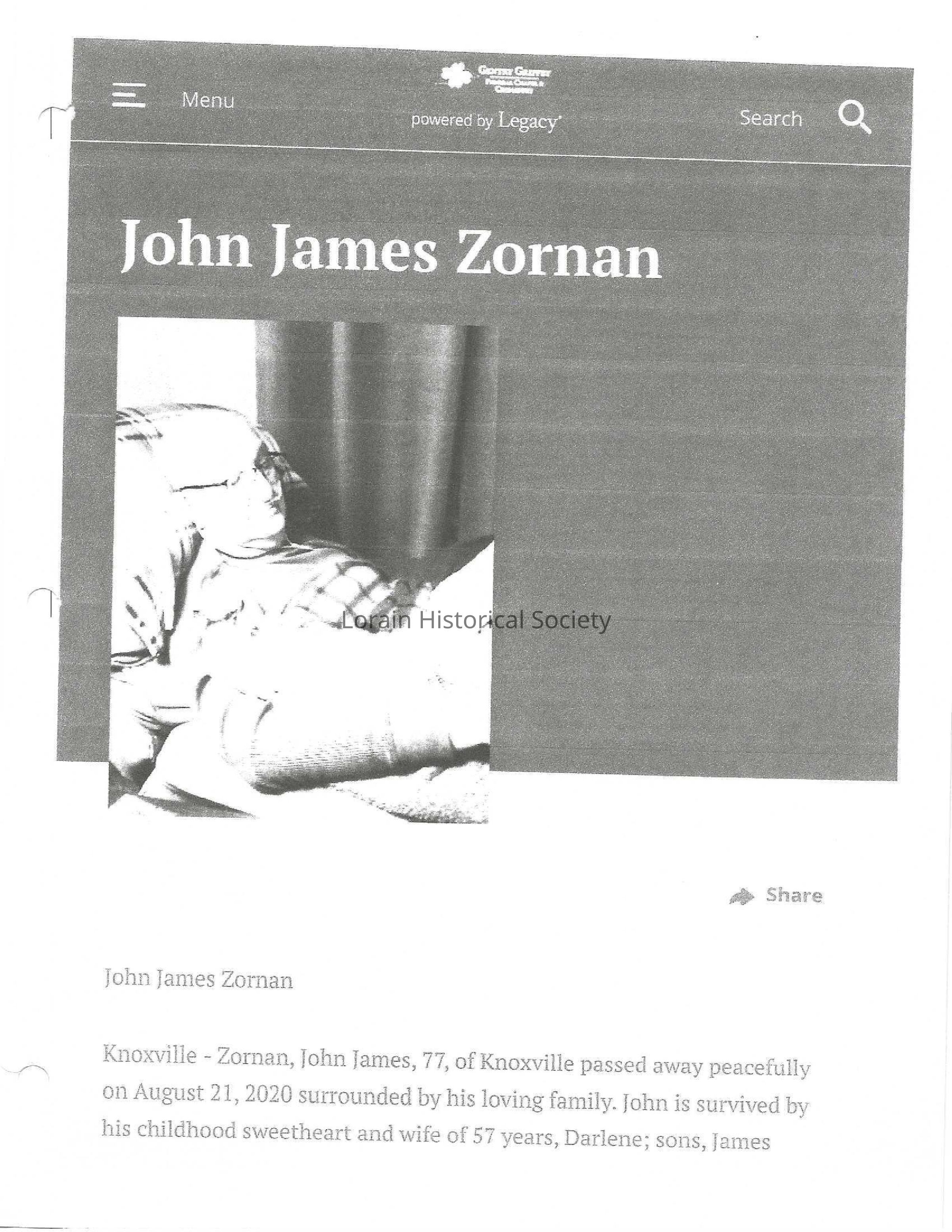 Zornan, John James obit