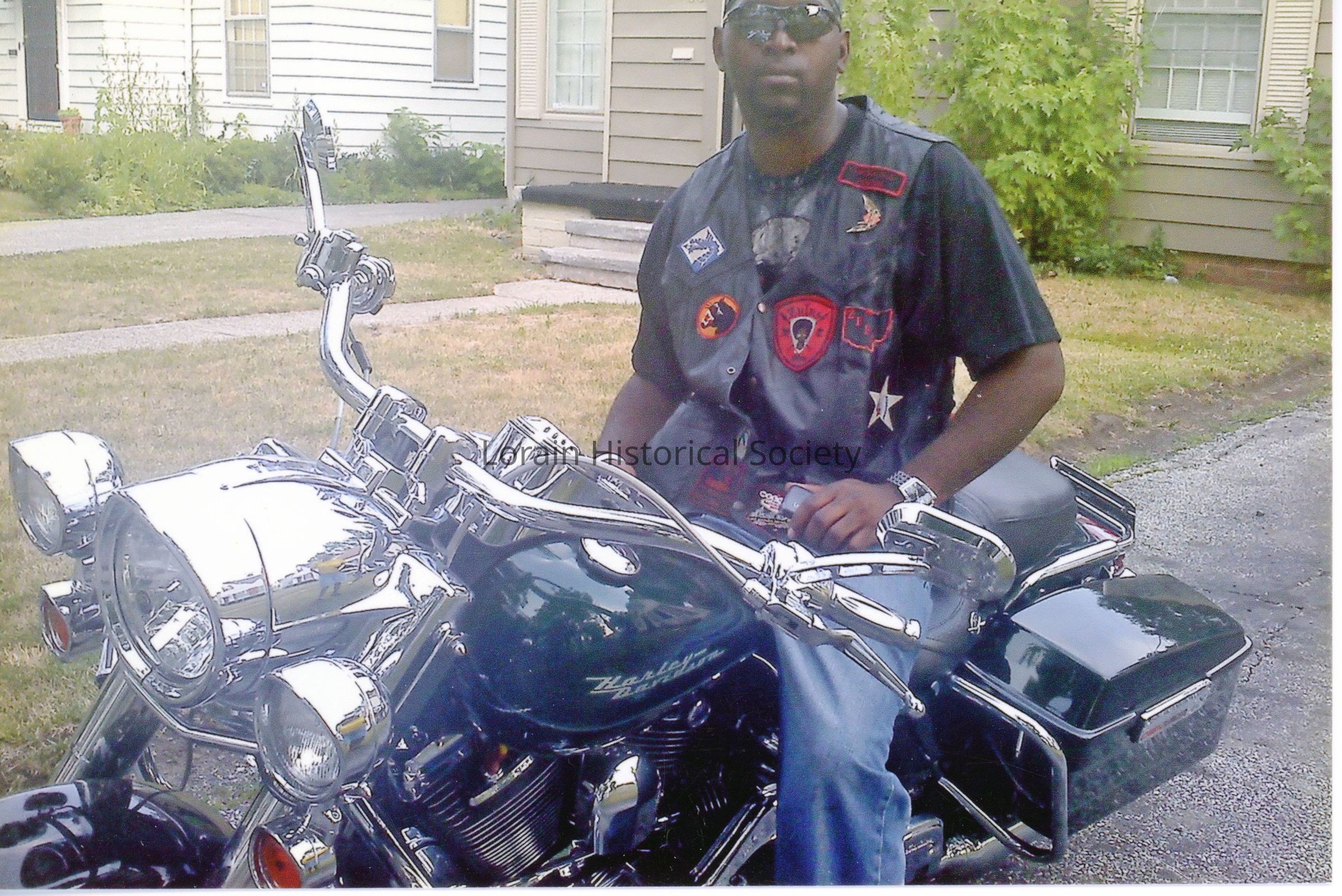 This photo of Charles "Chuck Dog" Boseman, Zulu Motorcycle Club member, was taken in Warrensville, OH shortly after the purchase of the bike. Chuck Dog is a nomad (a person who takes bike trips of 1000 miles or more). This photo, along with a larger collection, was donated by Richard "Sweet Jack" Edwards.Collection