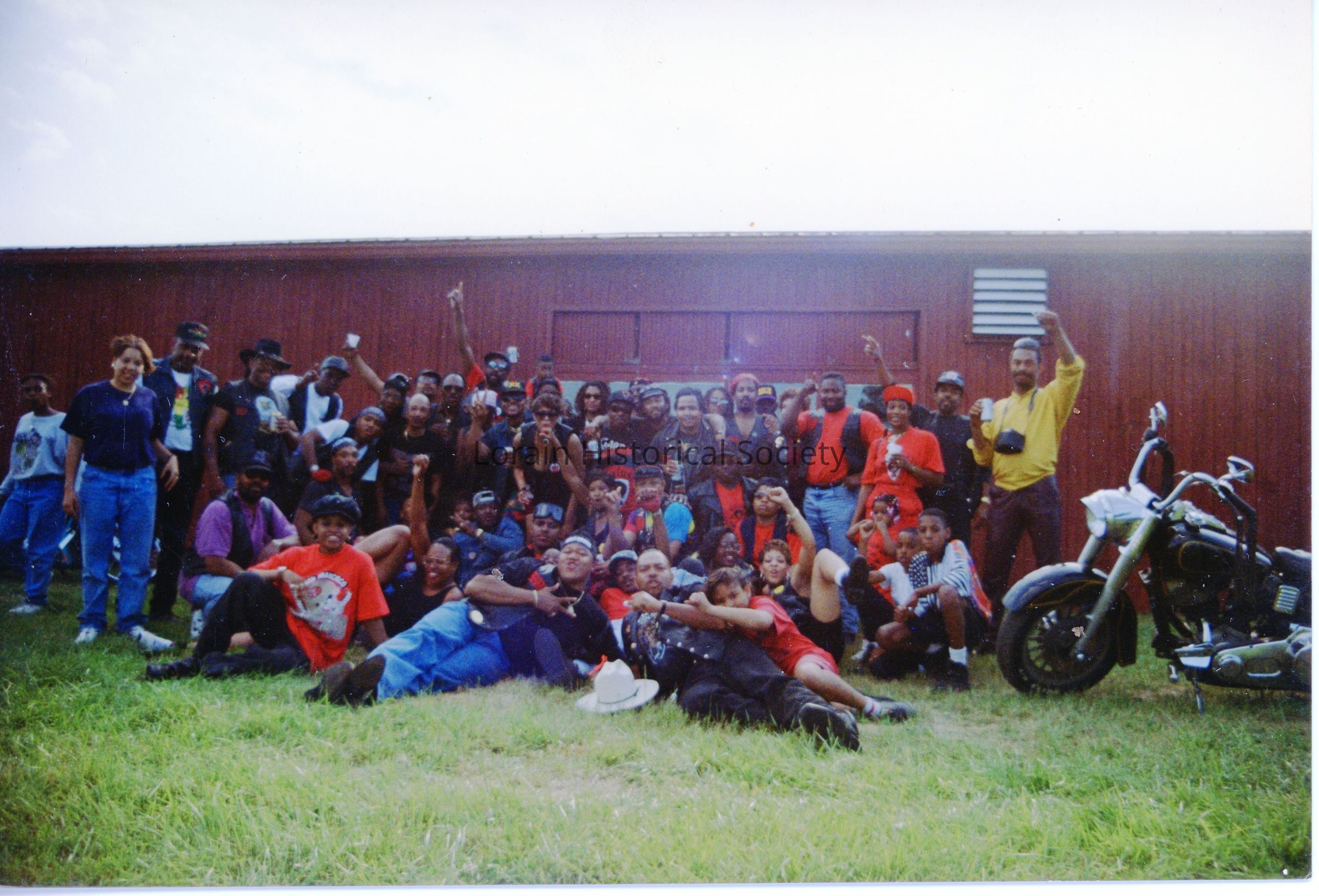 This photo was taken at a 3-day race held somewhere near Routes 58 and 113. The race included all kinds of unconventional challenges like the boot throw, when a biker had to jump off the bike, run to the boot, put it back on, get back on the bike and then finish the race. This photo, which includes Zulu club members from both the Lorain and Cleveland chapters) was taken in the 1990s.Collection
