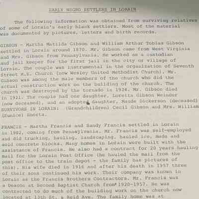"Early Negro Settlers in Lorain" by Darlene Brown