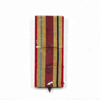 An original Second World War medal, the Africa Star. Complete with original blue (dark and light), yellow, and red ribbon. The six–pointed star is yellow copper zinc alloy.
